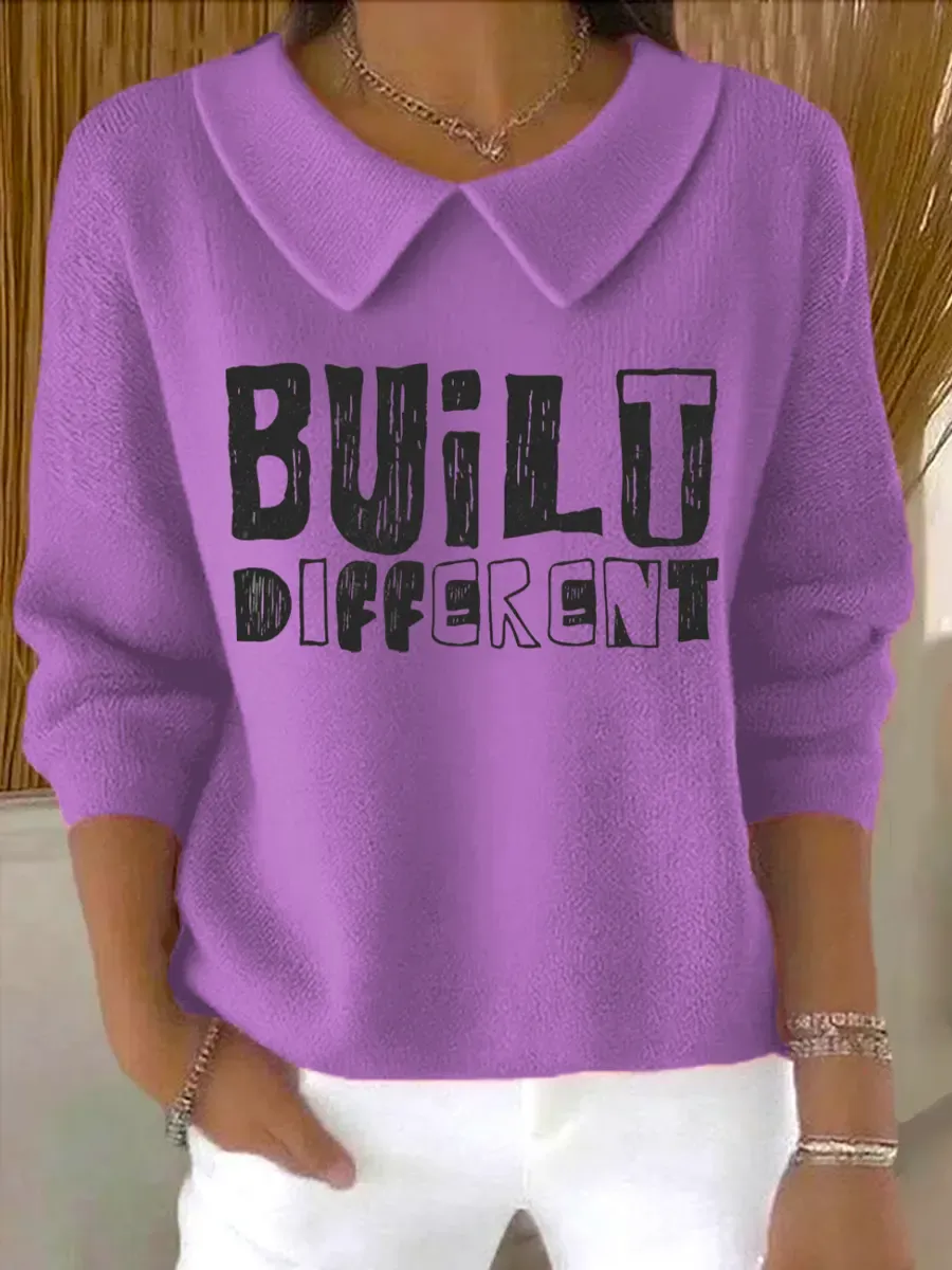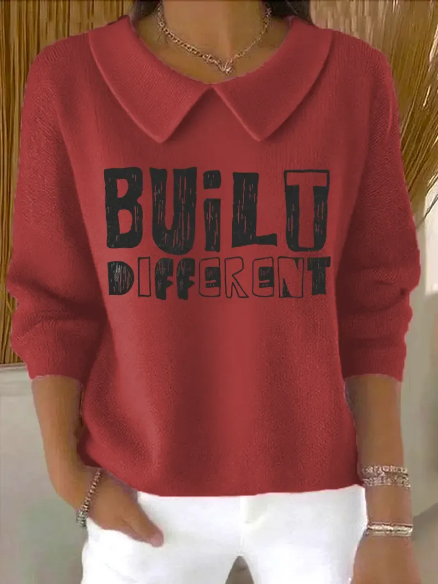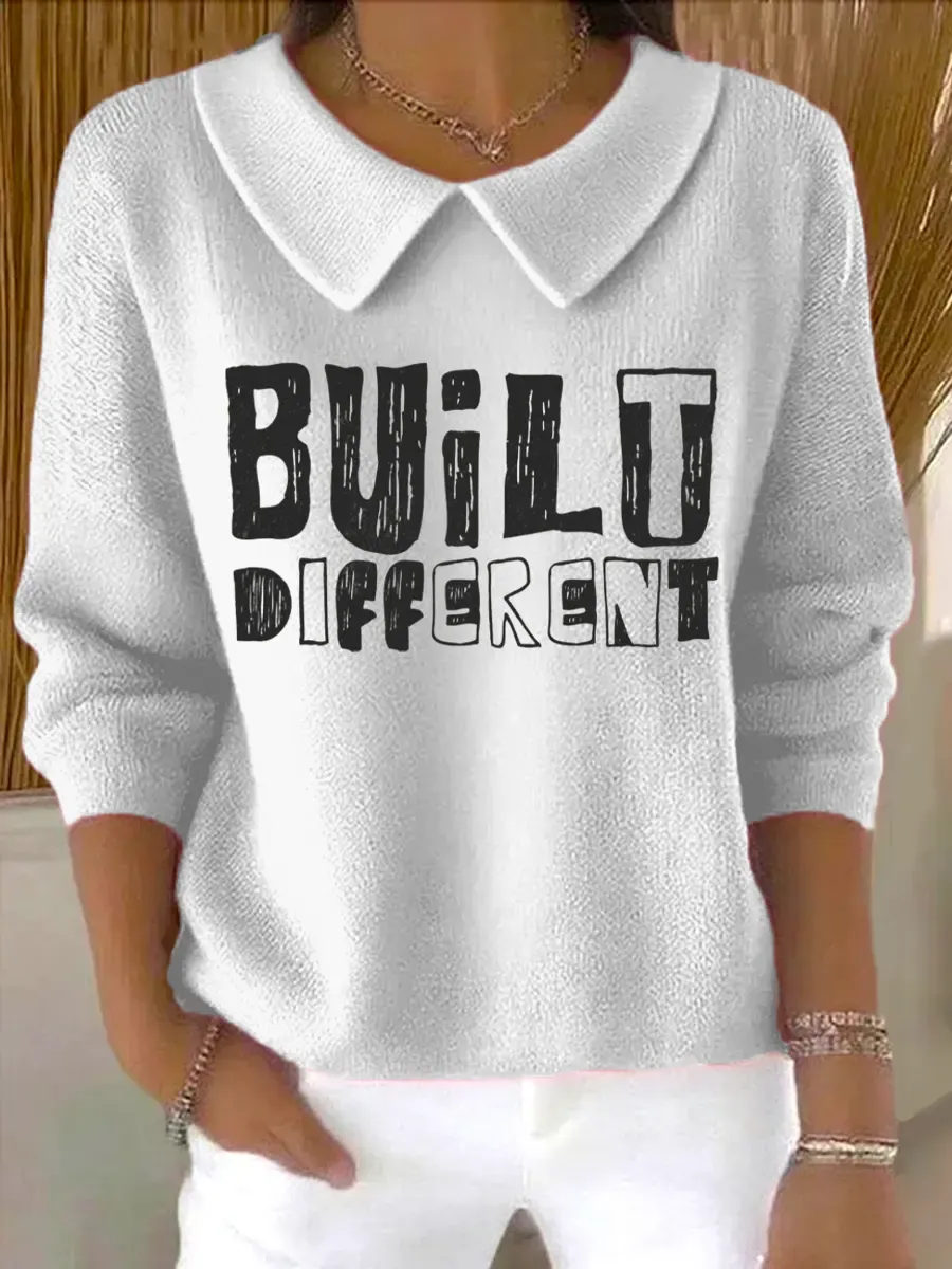 Vintage Built Different Art Print Casual Peter Pan Collar 3/4 Sleeve Sweat