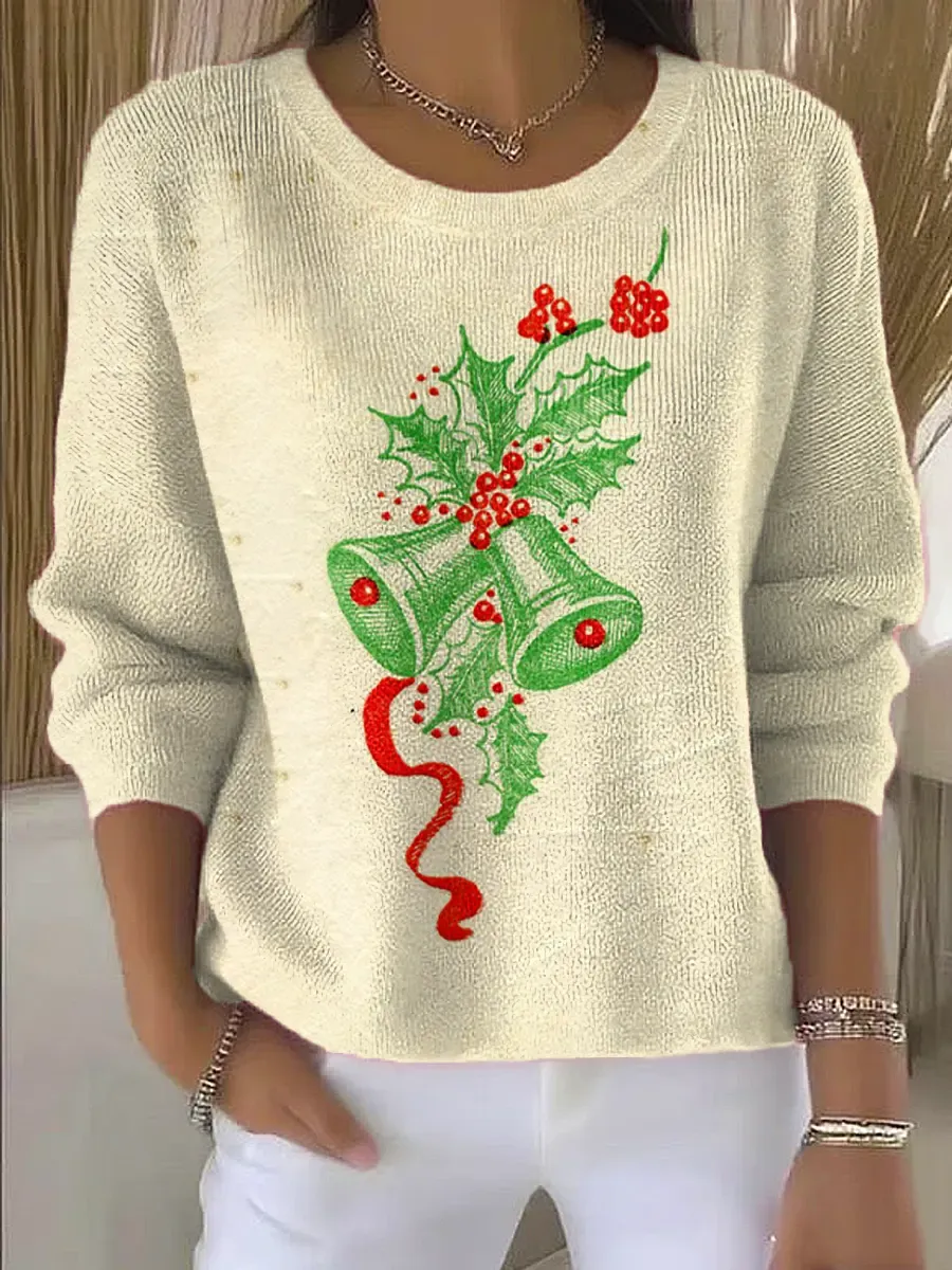 Vintage Christmas Art Print Casual Pullover Sweater