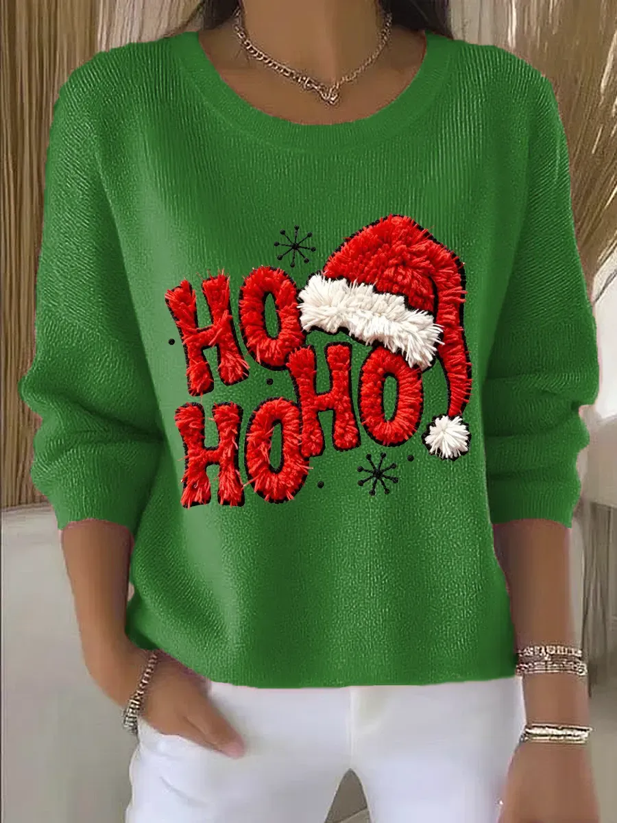 Vintage Christmas Art Print Casual Pullover Sweater