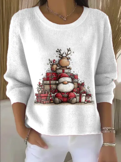 Vintage Christmas Art Print Casual Pullover Sweater