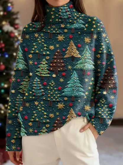 Vintage Christmas Tree Art Print Casual Pullover Sweater