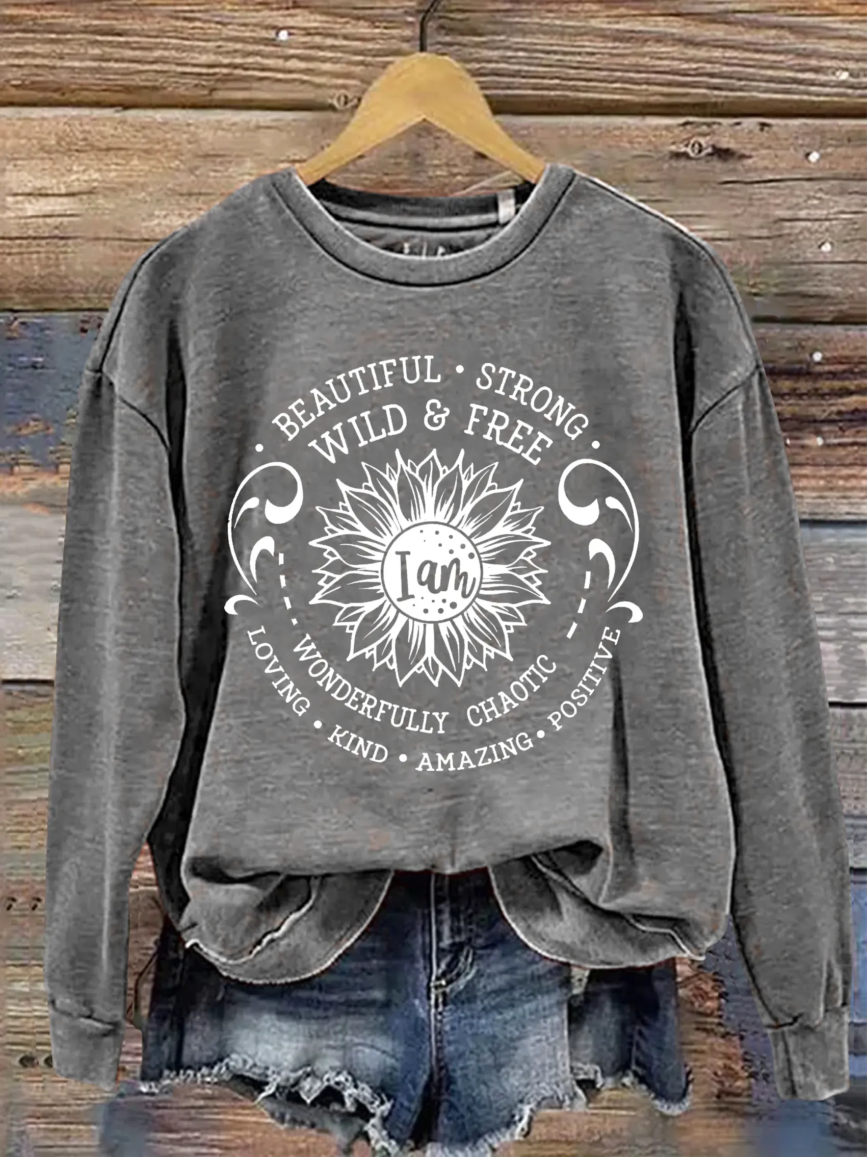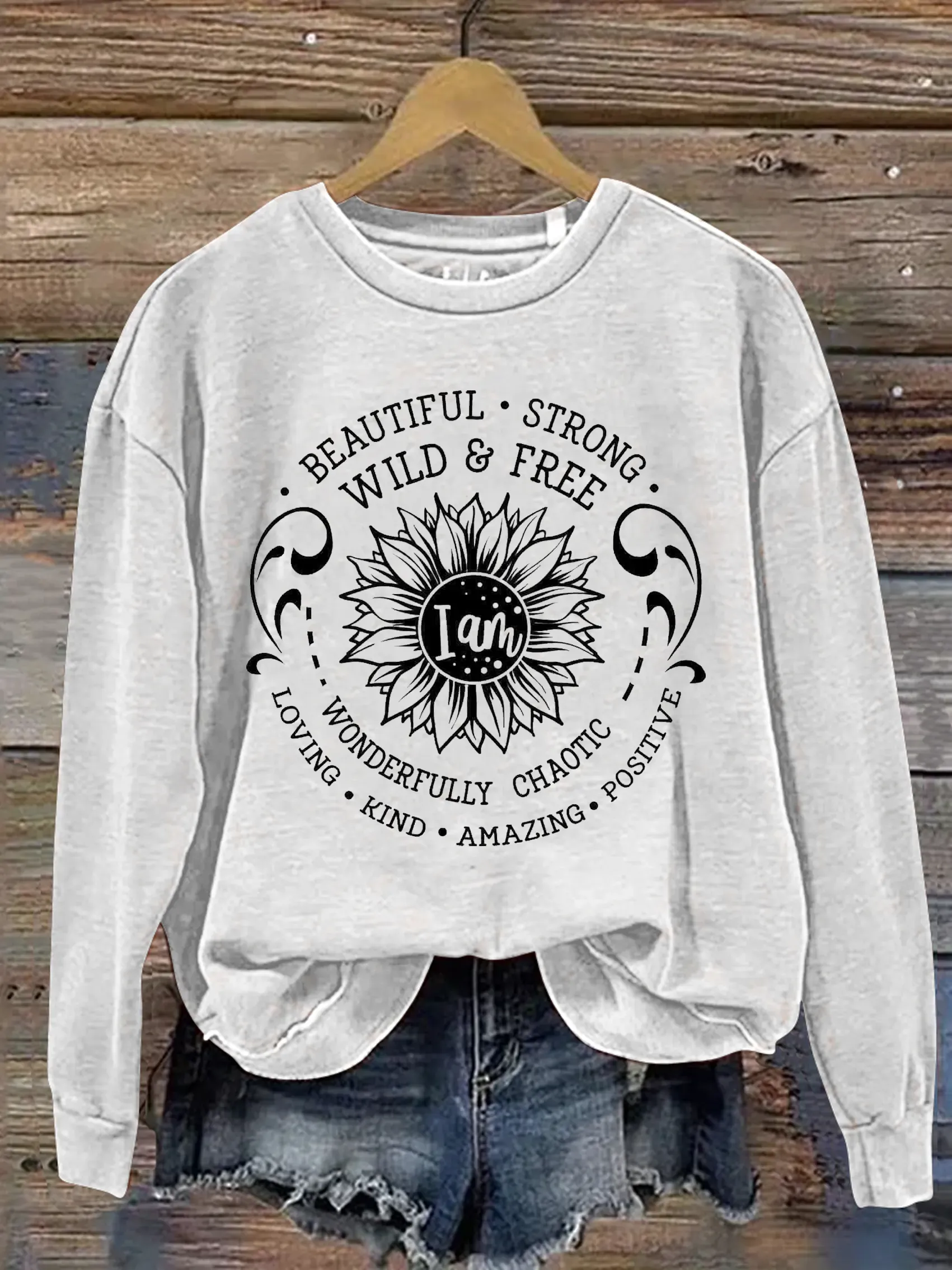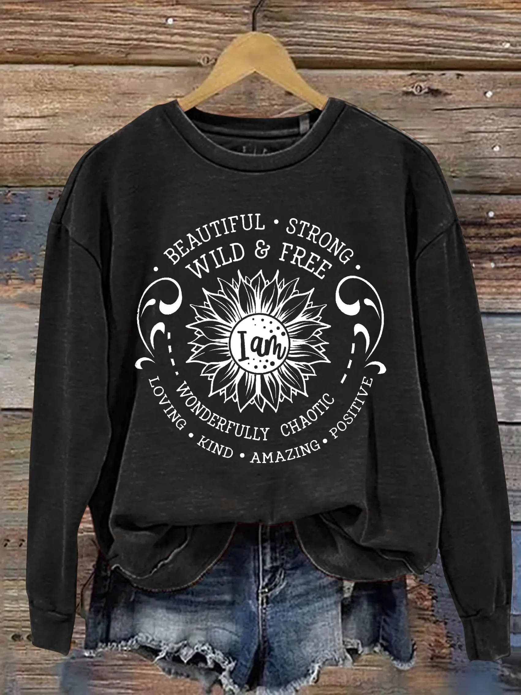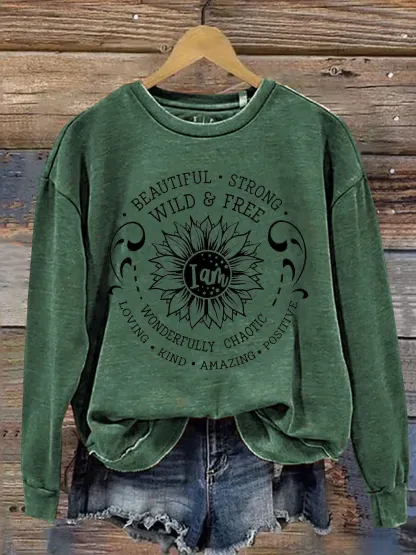 Vintage I Am Art Print Casual Sweatshirt