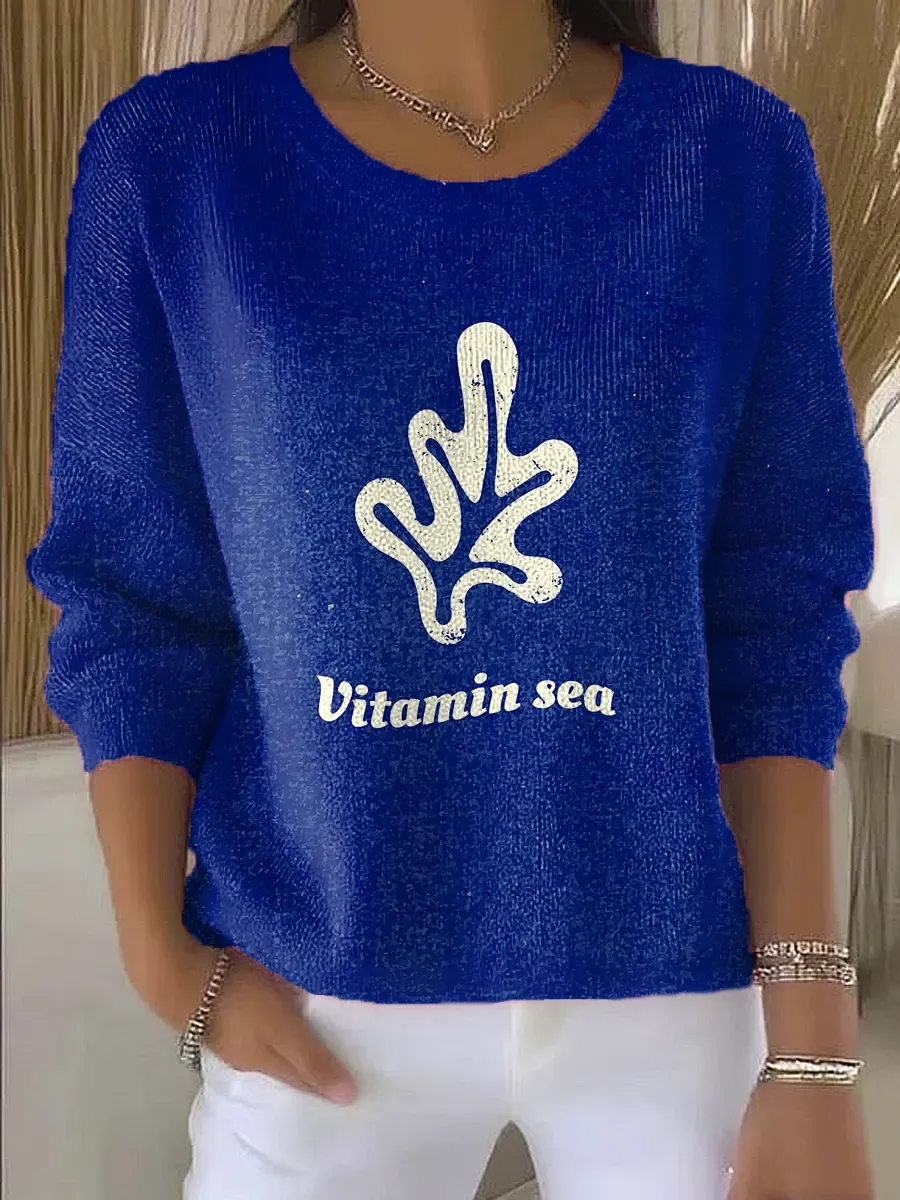 Vintage Vitamin Sea Art Print Casual Pullover Sweater