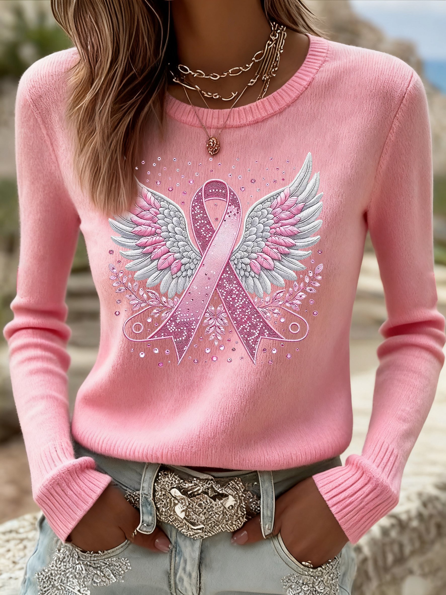 Women's Autumn And Winter Pink Ribbon Bottoming Shirt