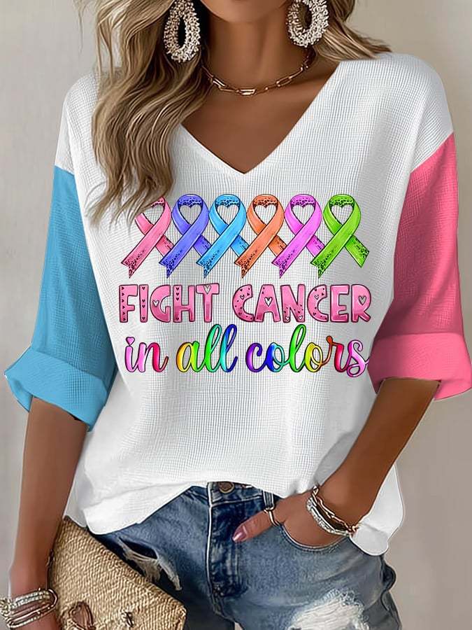 Women's Breast Cancer Color Print Waffle T-Shirt