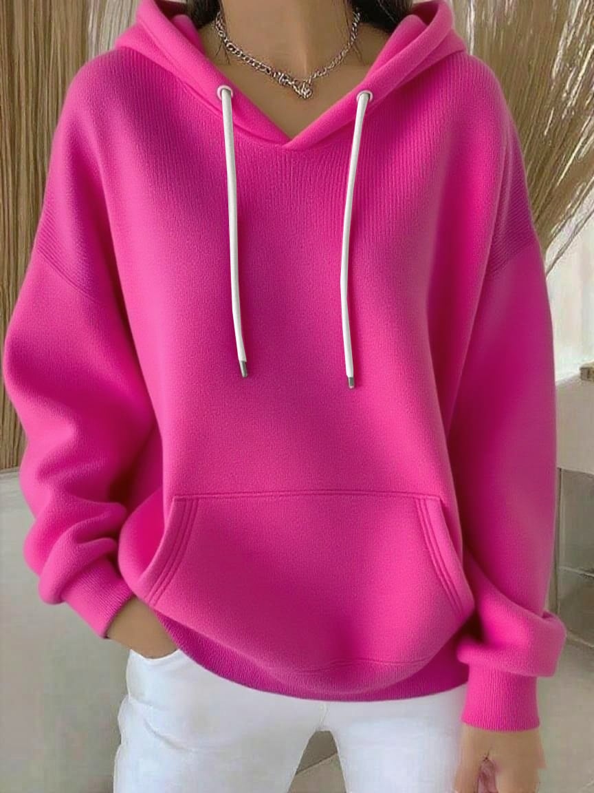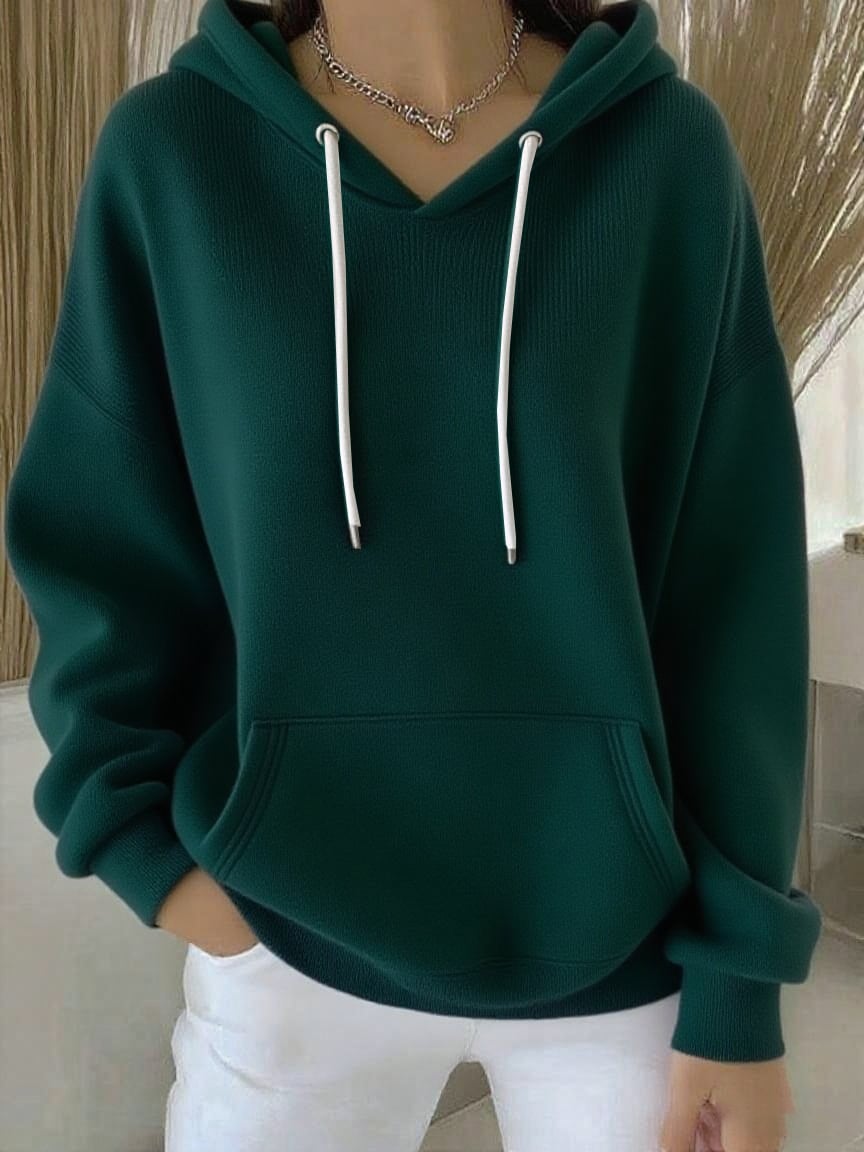 Women's Casual Autumn And Winter Long-Sleeved Ribbed Bottoming Shirt With Hoodie
