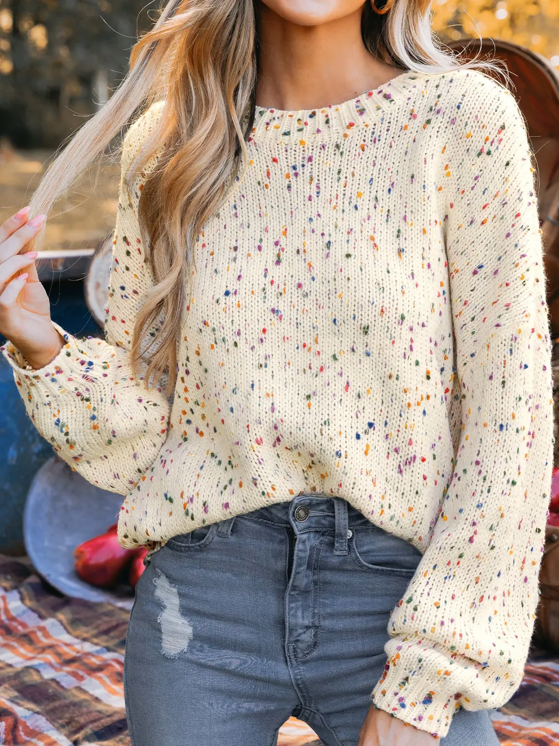 Women's Cute Warm Colorful Polka Dot Casual Round Neck Long Sleeve Knitted Sweater