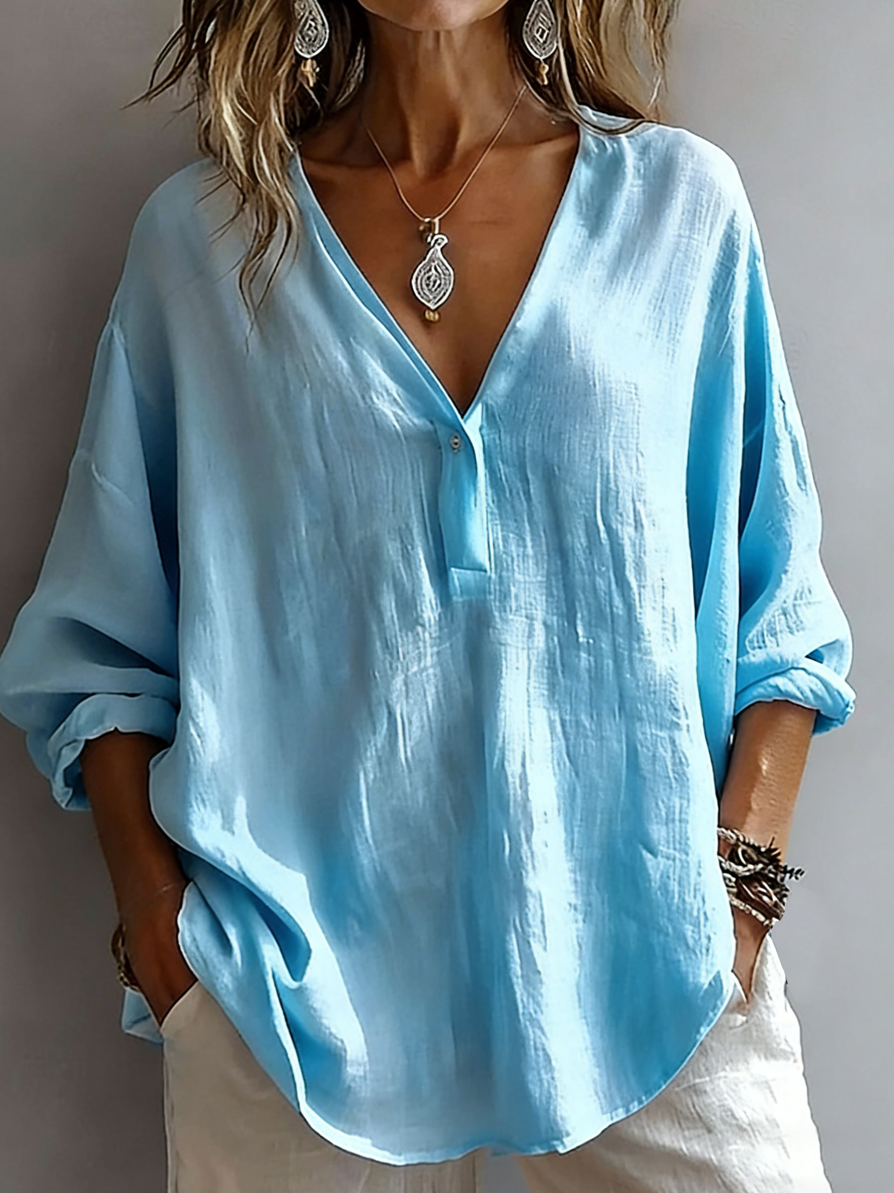 Women's Casual Long-sleeved Cotton Linen Shirt
