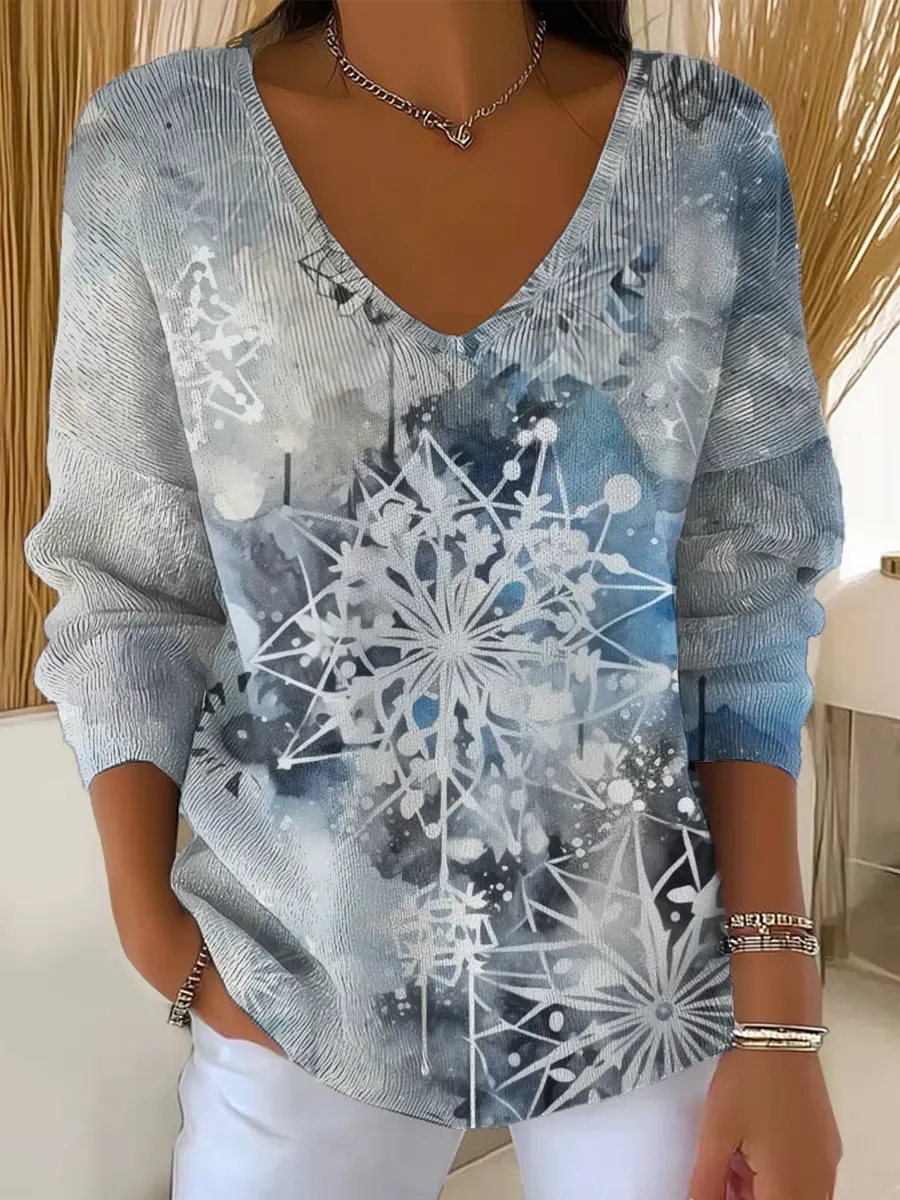 Vintage Floral Art Print Casual V-Neck Pullover Sweater