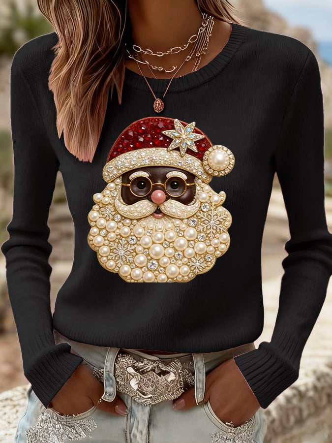 Women's Black Christmas Art Print Top