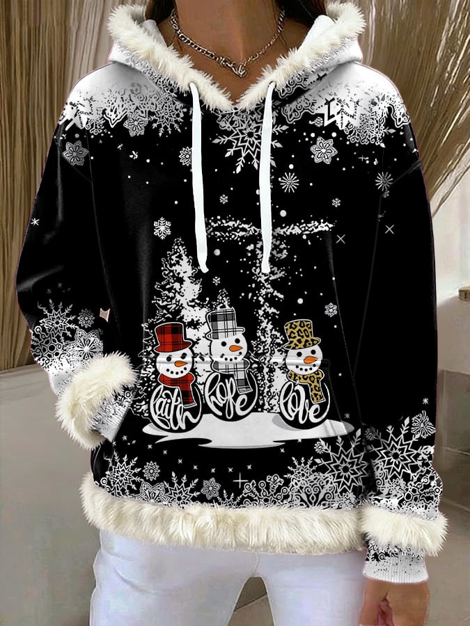Women's Christian Christmas Print Plush Hooded Sweatshirt