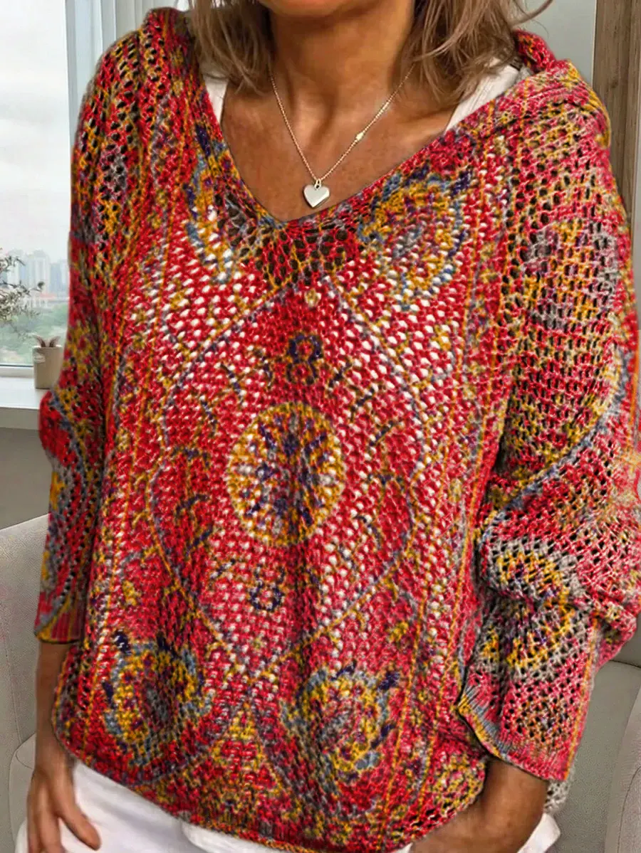 Women's Ethnic Totem Art Print Long-Sleeved Hooded Cover-Up