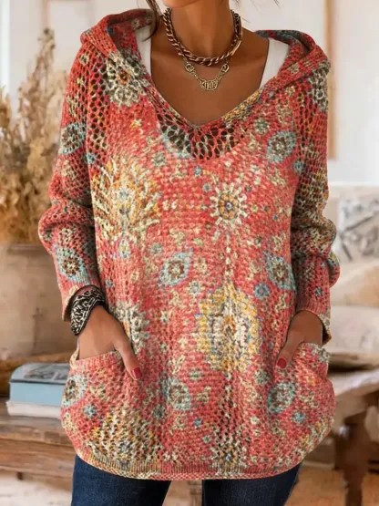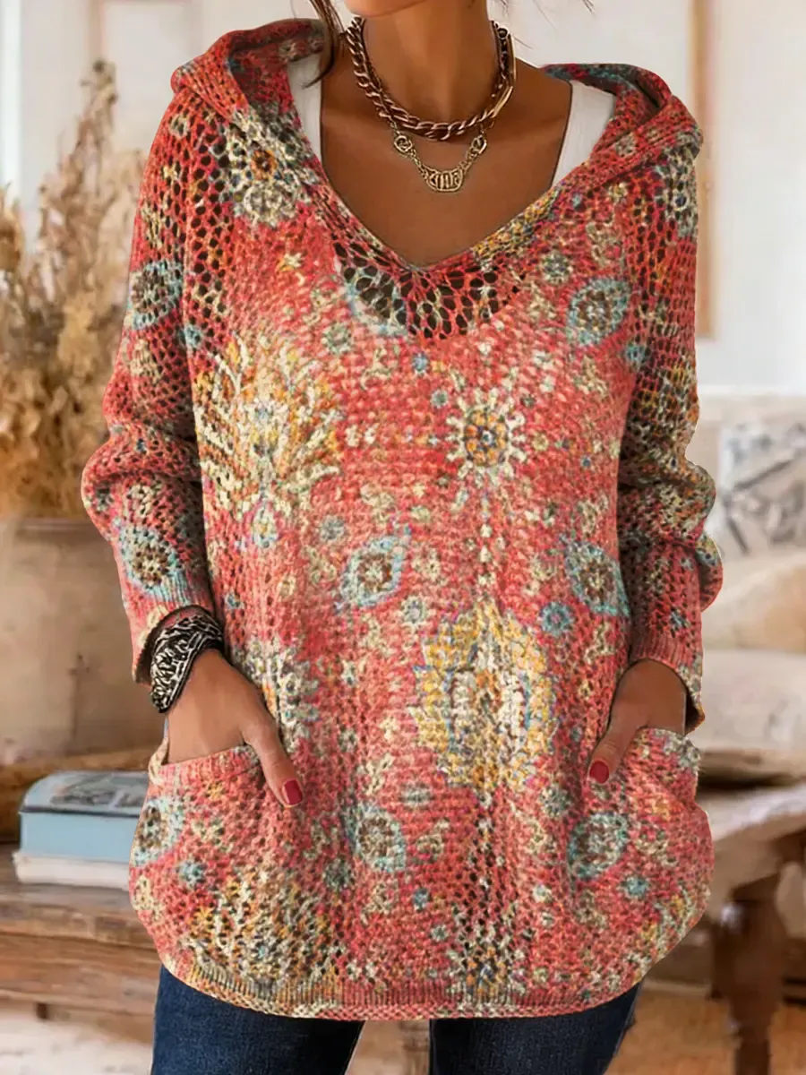 Women's Ethnic Totem Art Print Long-Sleeved Hooded Cover-Up