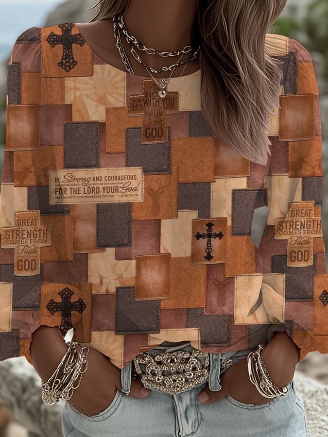 Women's Faith Art Print Round Neck Long Sleeve Shirt