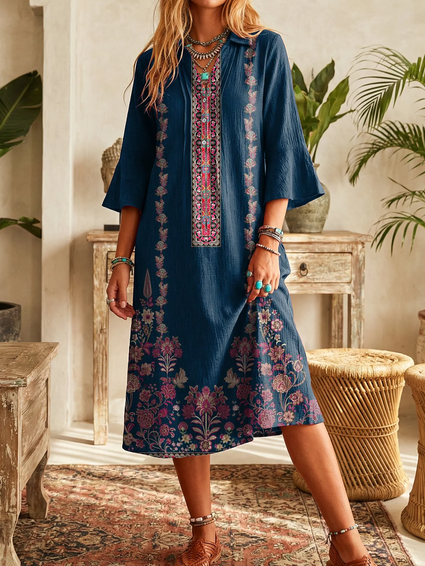 Shirt Length: RegularSleeves Length:3/4 SleeveCollar: Round CollarMaterial: 100%CottonMaterial Stretch: No StretchPocket :Side poctketWeight: 0.300kgPackage: 1 x Dress