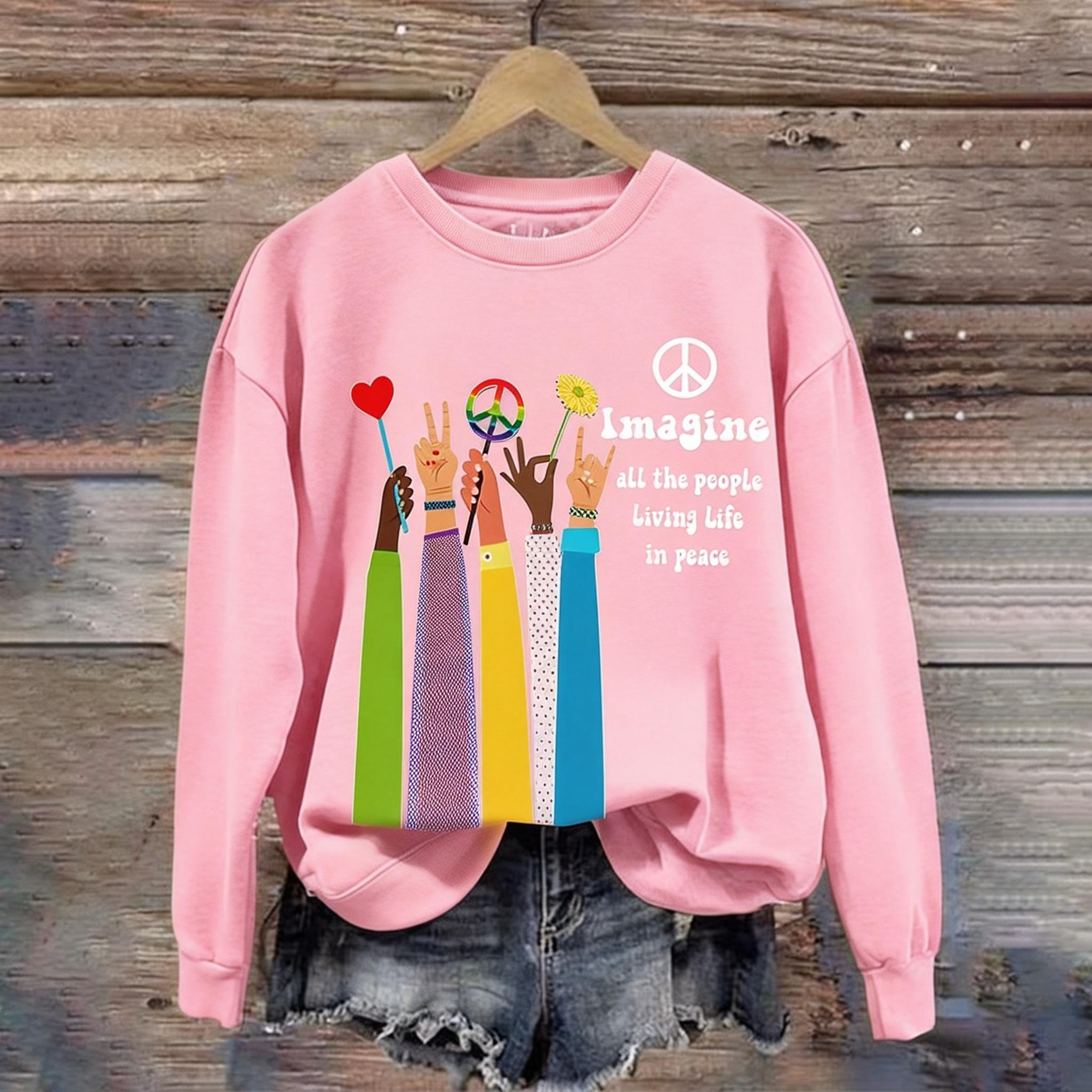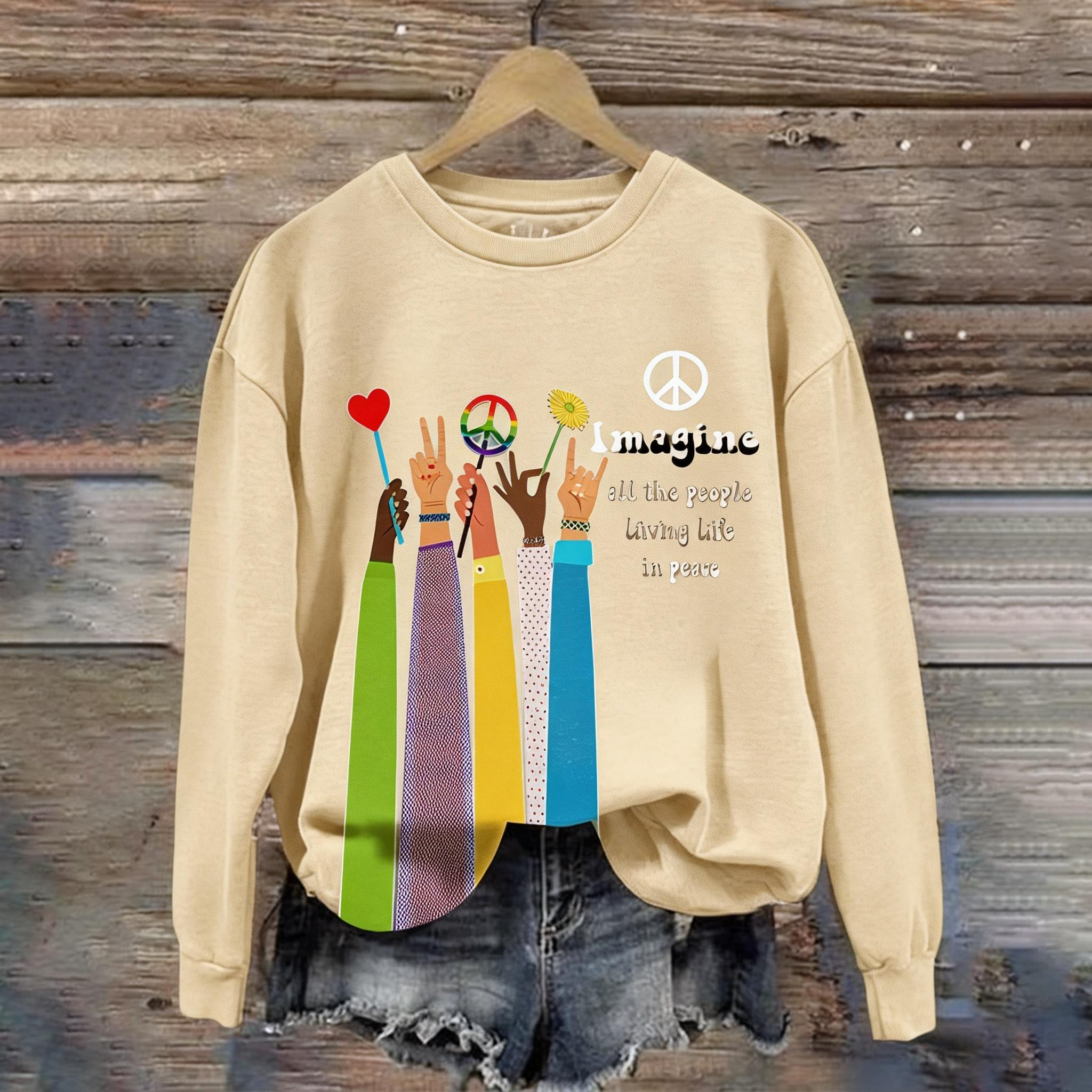 Retro Hippie Imagine All The People Living Life In Peace Print Sweatshirt