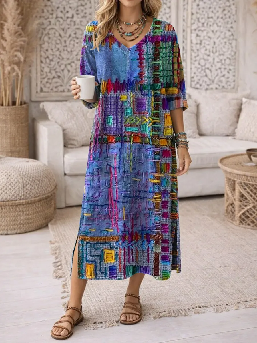 Ethnicity Geometry Texture Women's Art Print Casual Washed Denim Cotton Dress