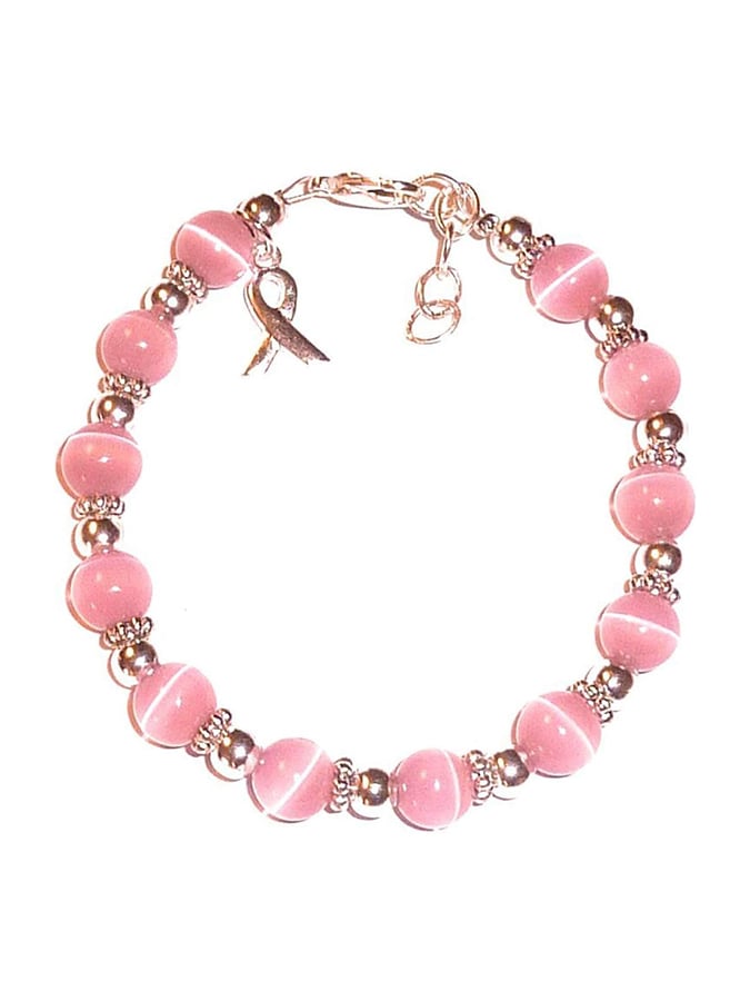 Breast Cancer Awareness Metal Chain Cat'S Eye Rose Quartz Health Bracelet