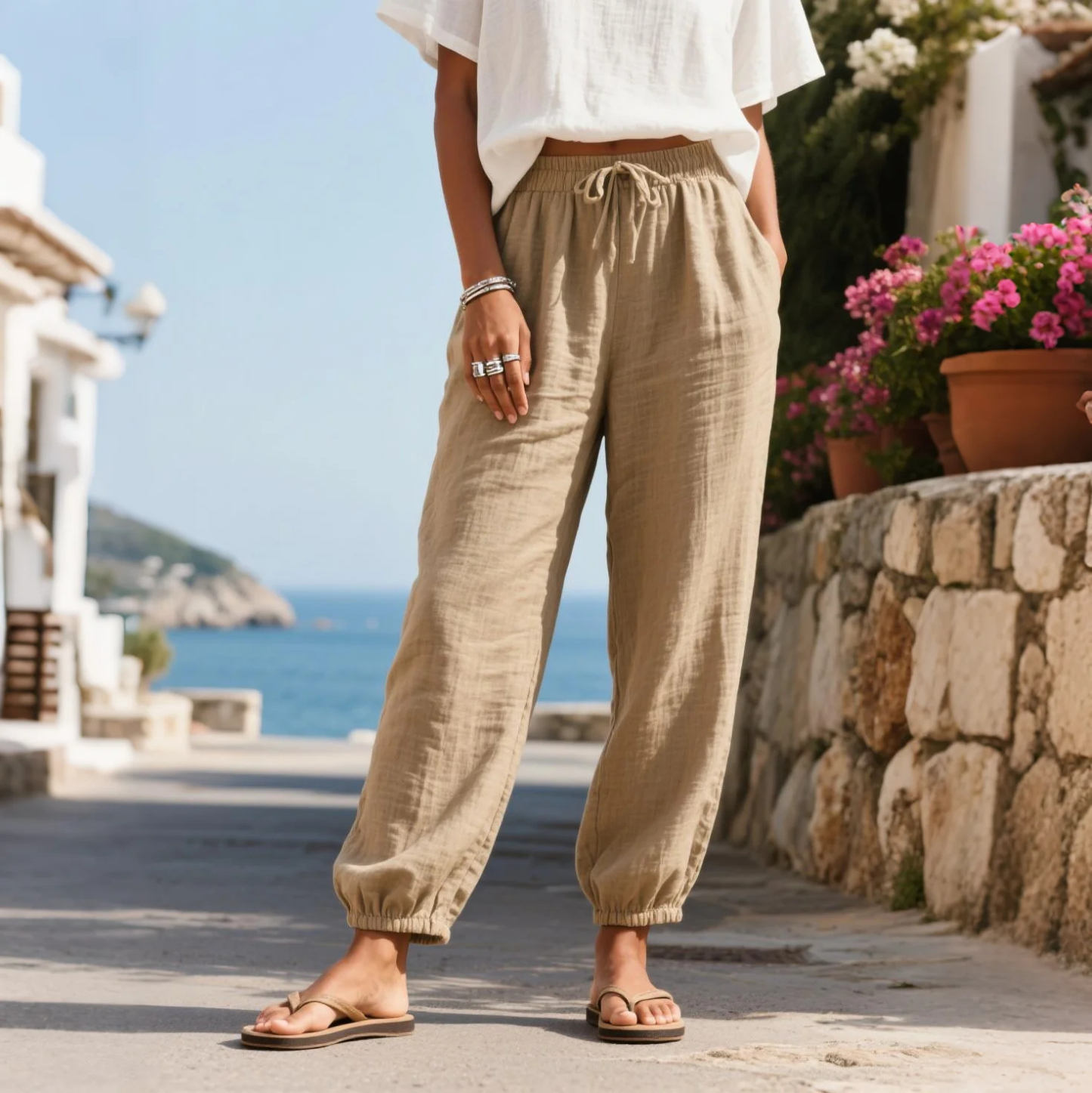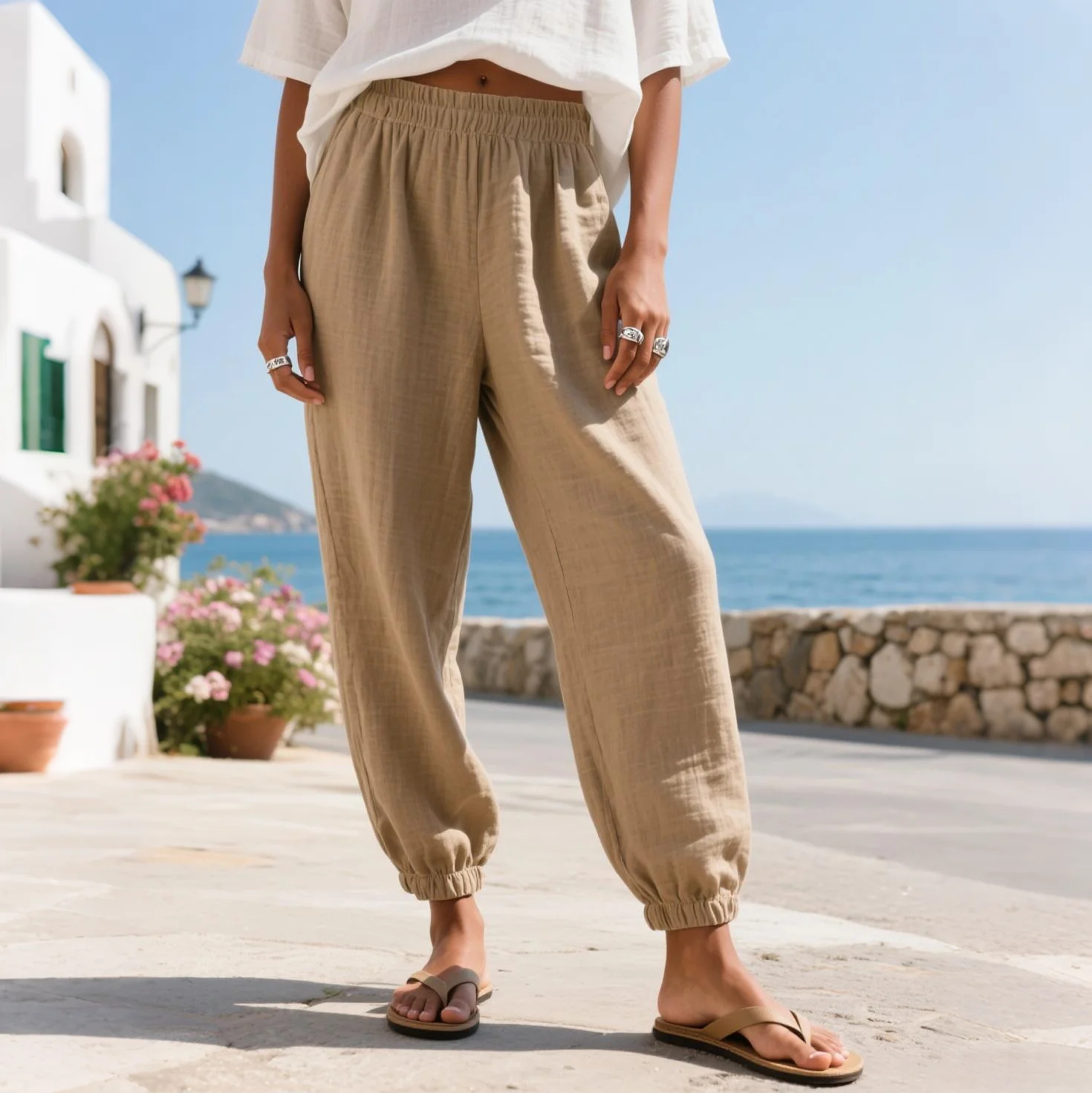 Women's Elegant Loose Comfortable Breathable Linen Elastic Waist Skinny Pants Trousers