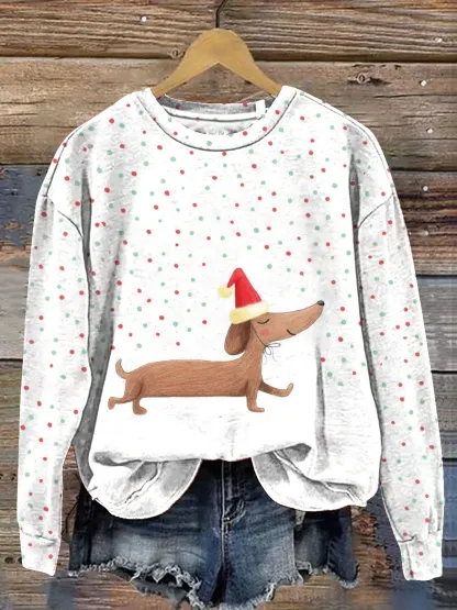 Vintage Cute Dog Art Print Casual Sweatshirt