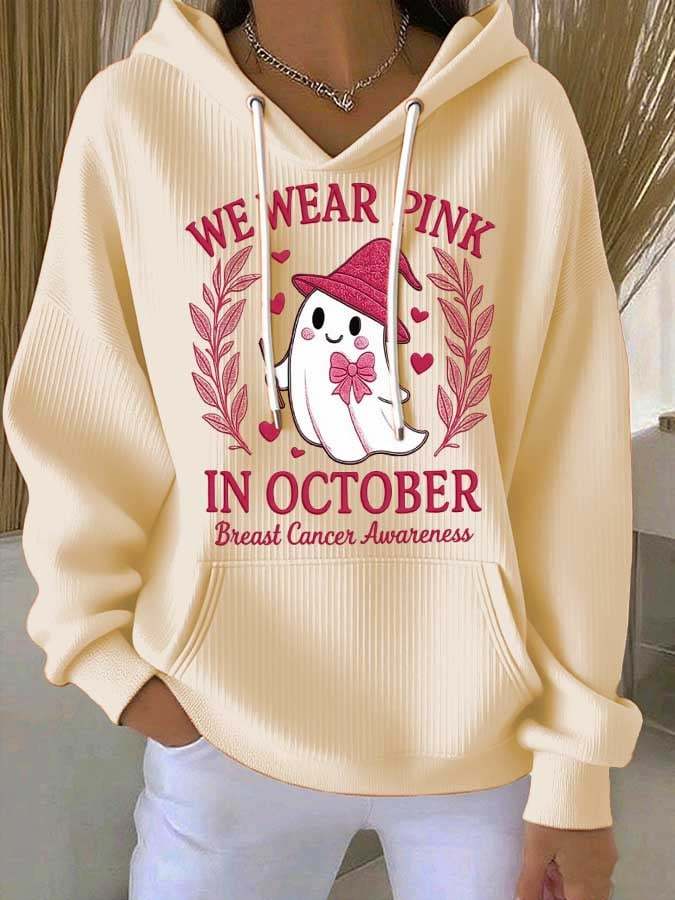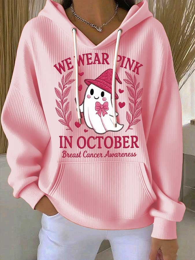 Women's Breast Cancer Awareness Print Casual Hoodie