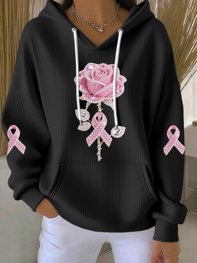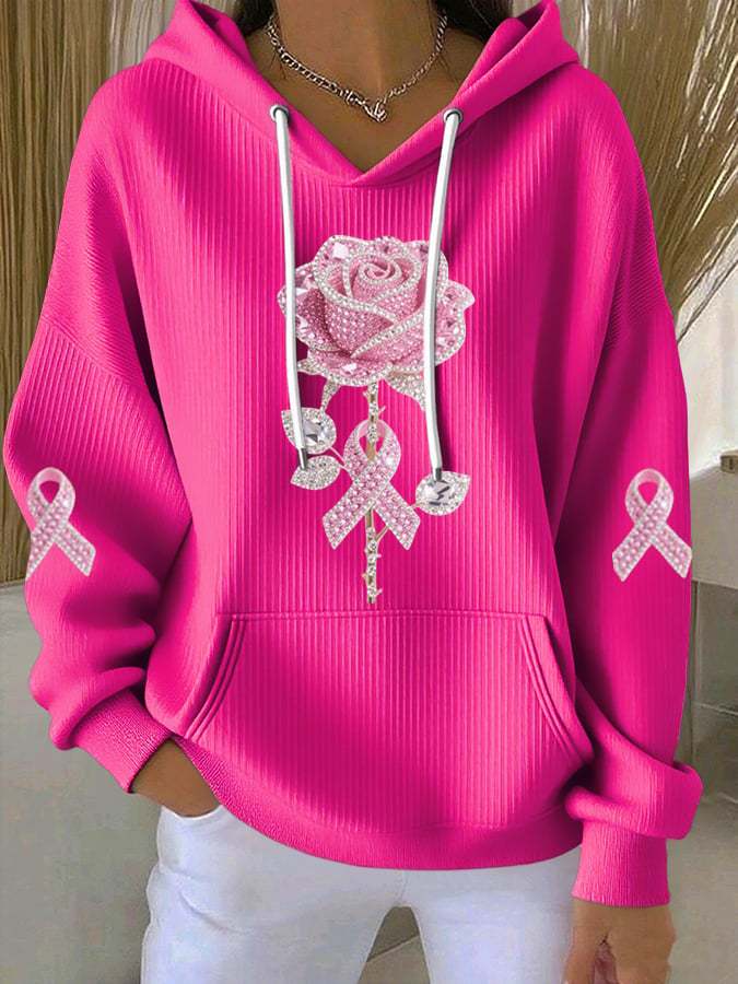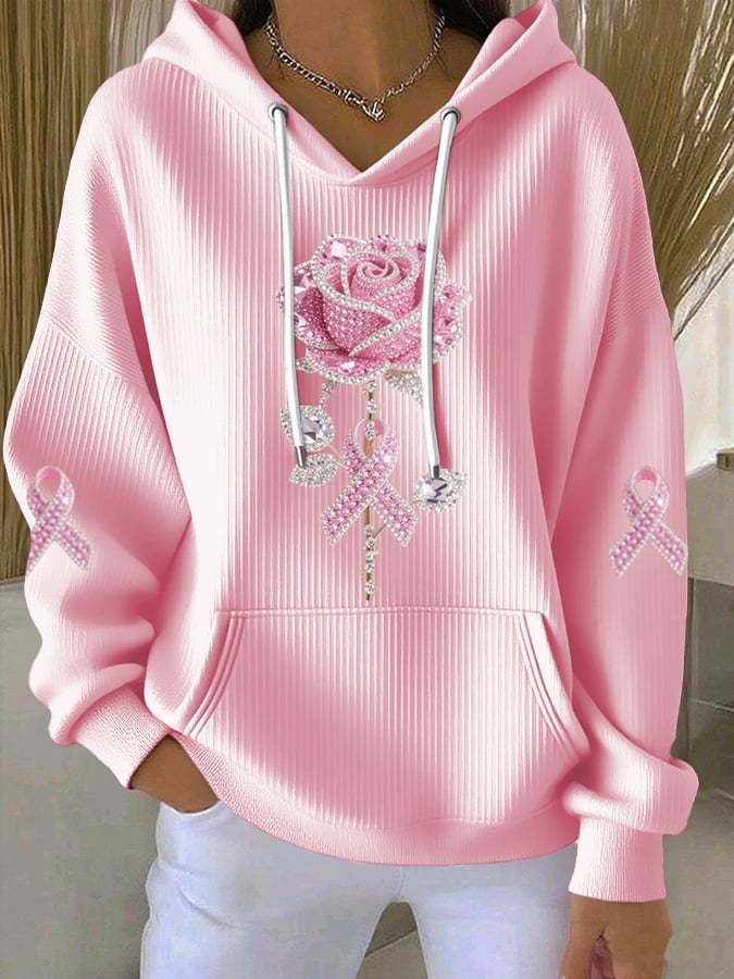 Women's Breast Cancer Awareness Roses Print Casual Sweatshirt