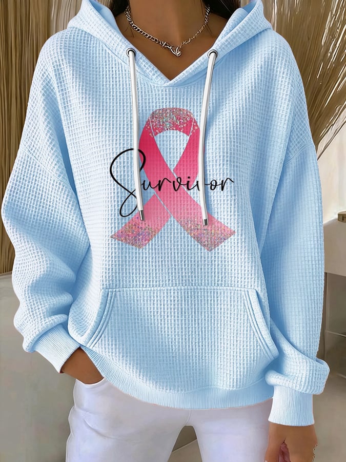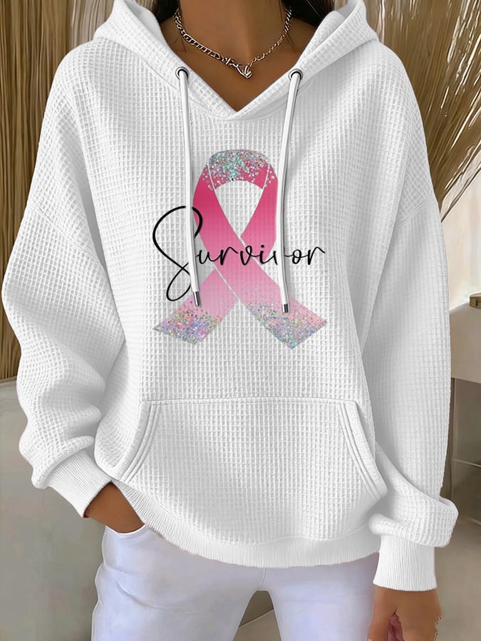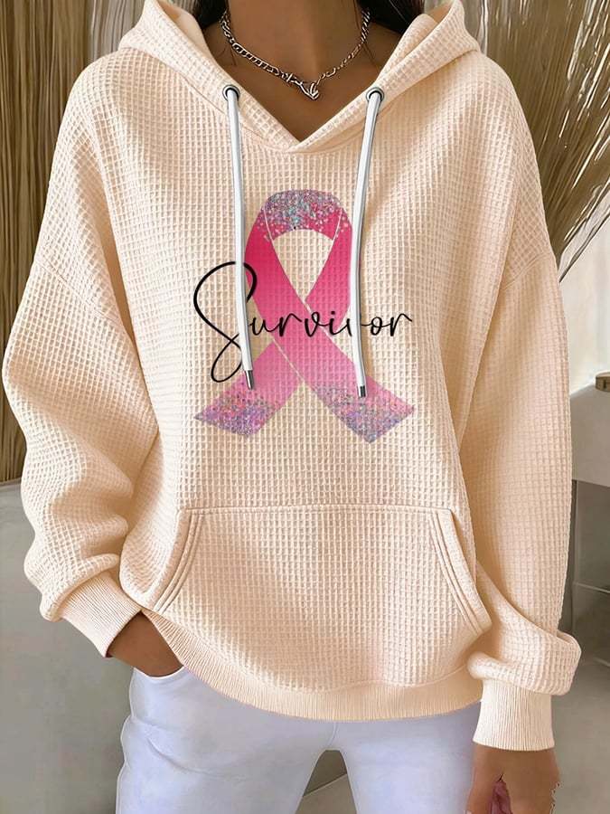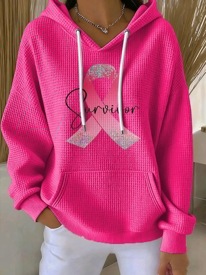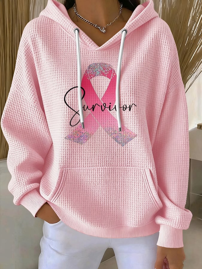 Women's Casual Breast Cancer Pink Ribbon Survivor Waffle Hoodie