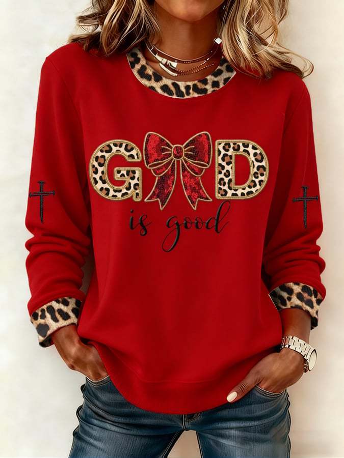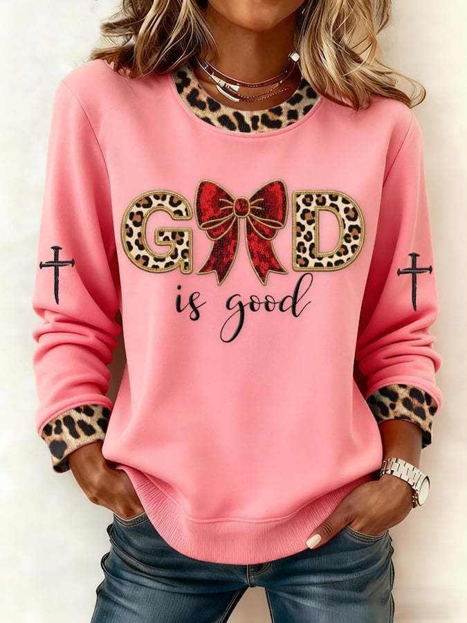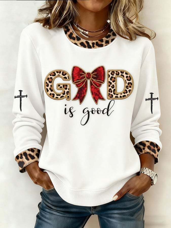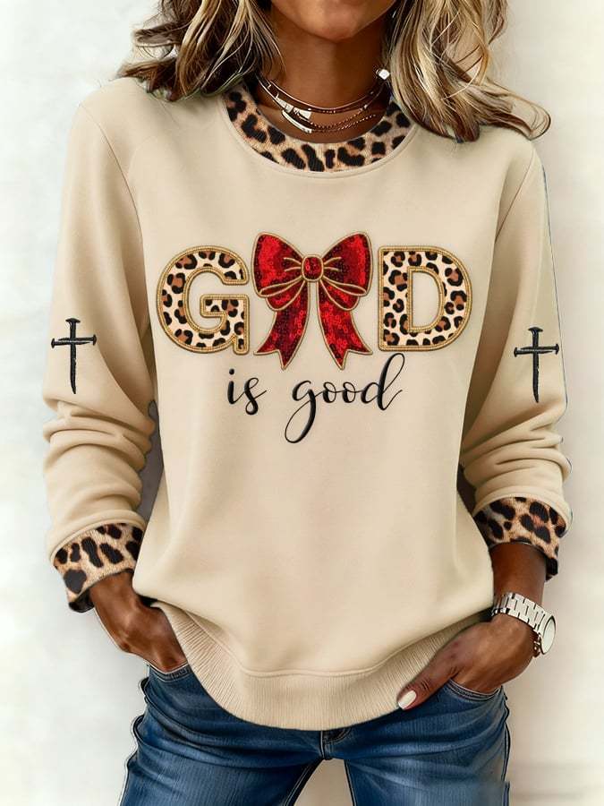 Women's Casual Leopard Print Christmas GOD is DOOD Sweatshirt