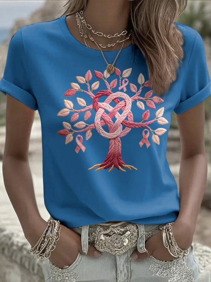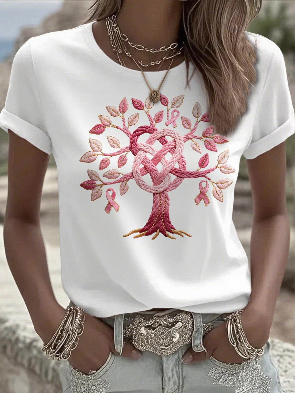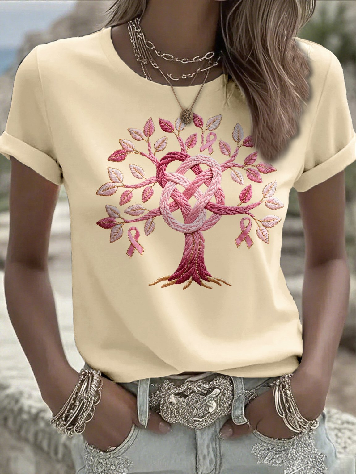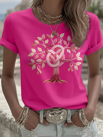 Women's Casual Pink Breast Cancer Tree of Life T-shirt