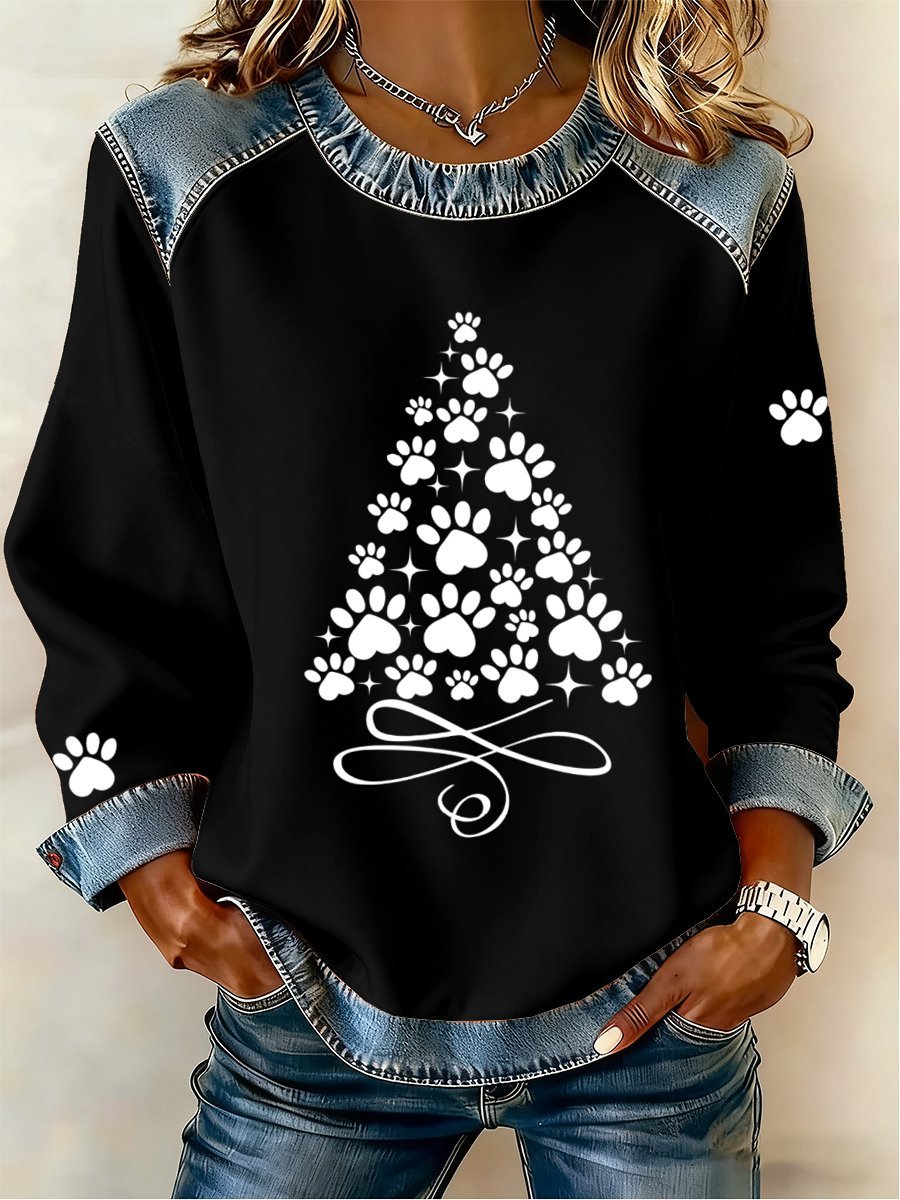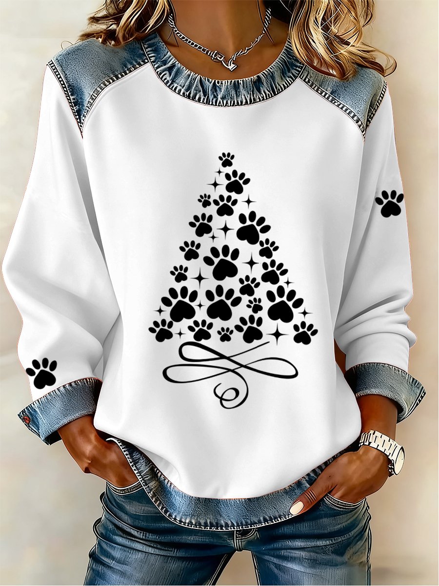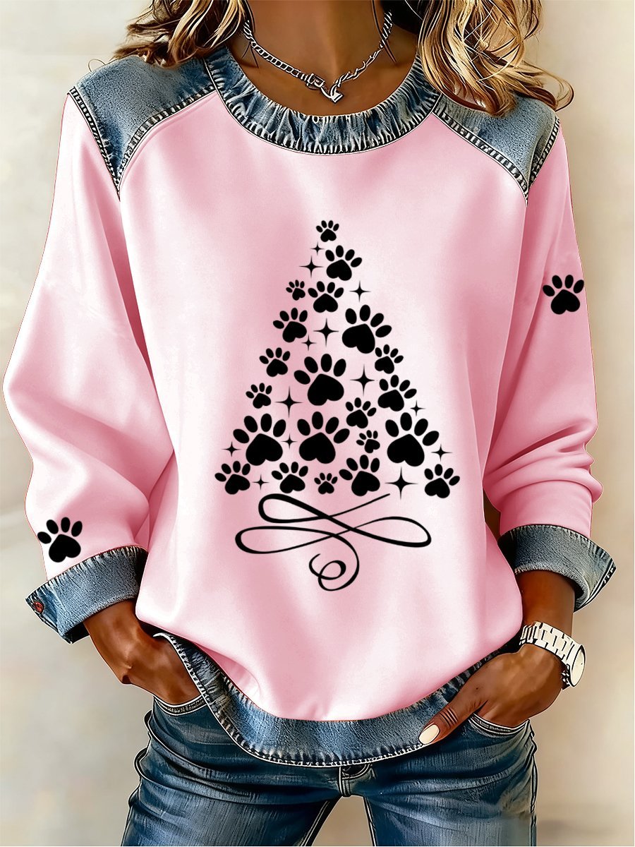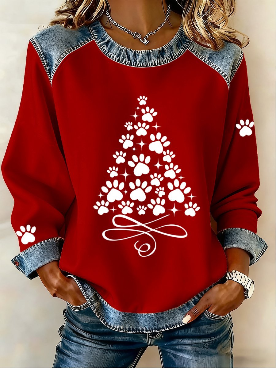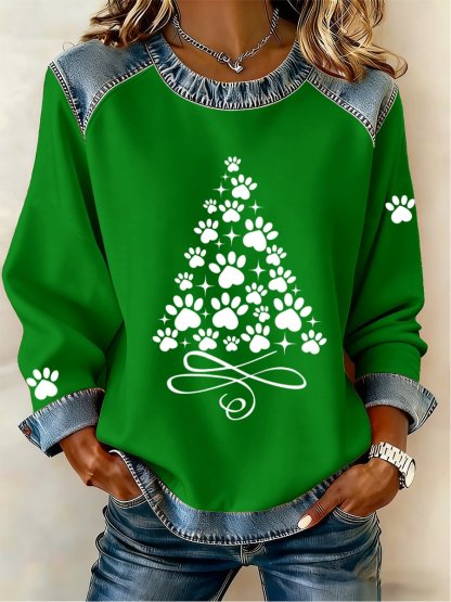 Women'S Dog Paw Tree Christmas Sweatshirt