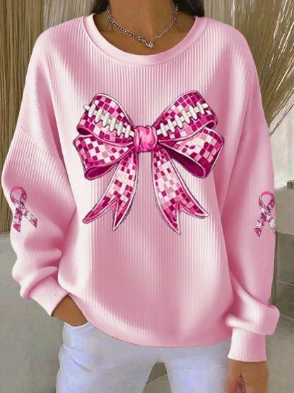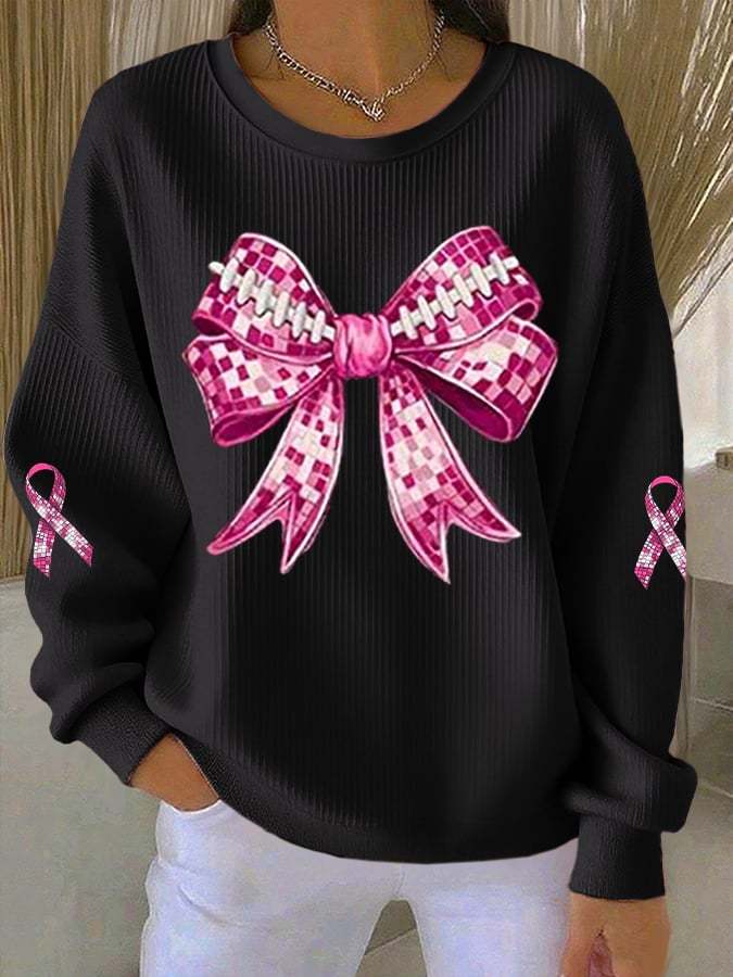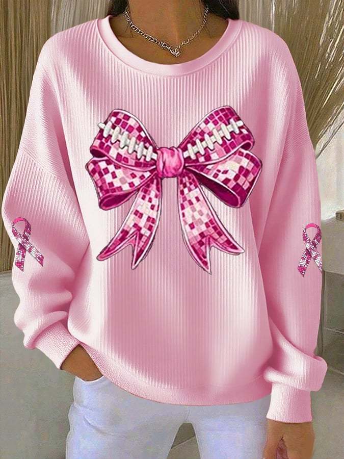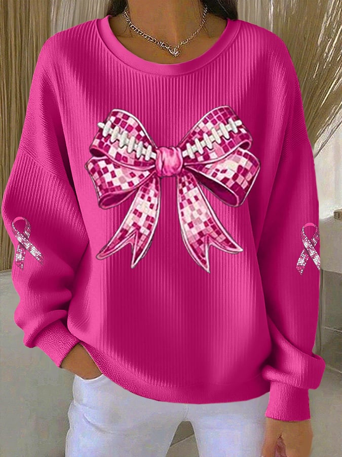 Women's Retro Breast Cancer Football Print Round Neck Sweatshirt