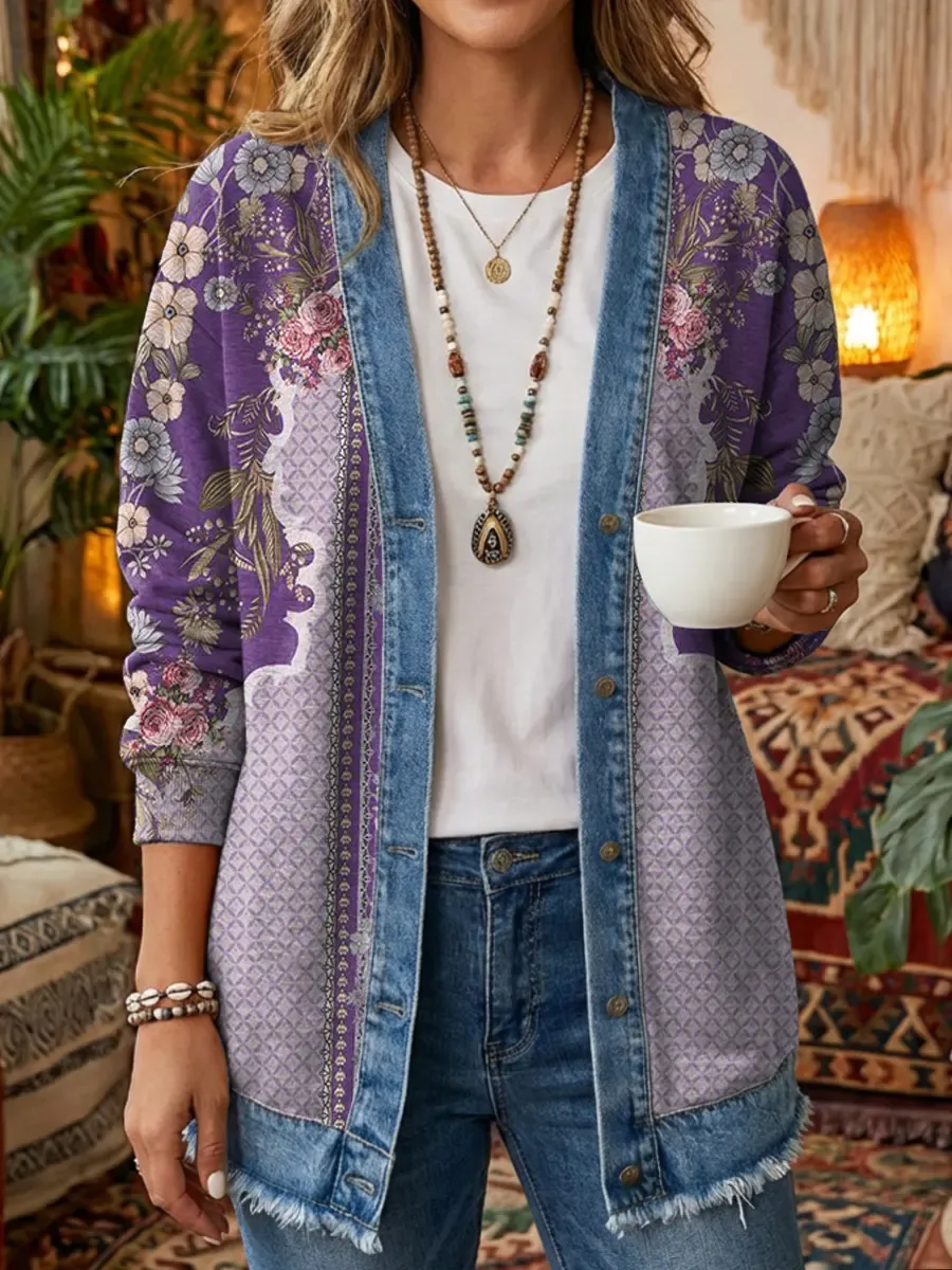 Women's Vintage Ethnic Floral Pattern Art Print Casual Long-sleeve Shirt Jacket