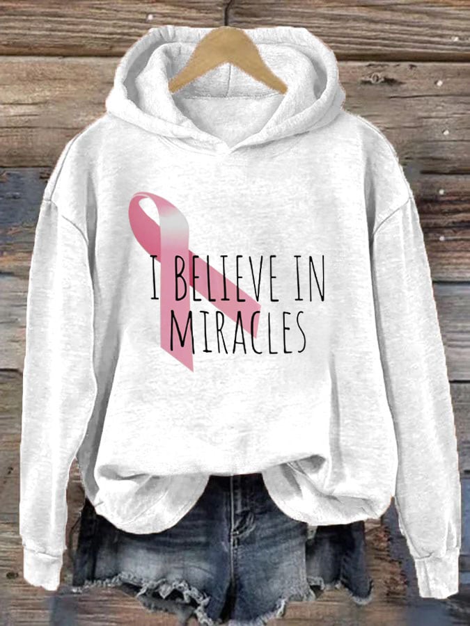 Women's We Believe in Miracles Breast Cancer Awarenes Printed Hoodie
