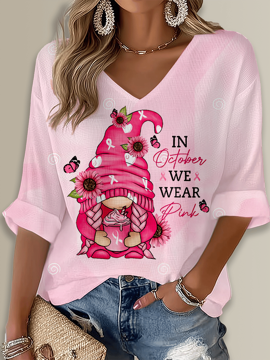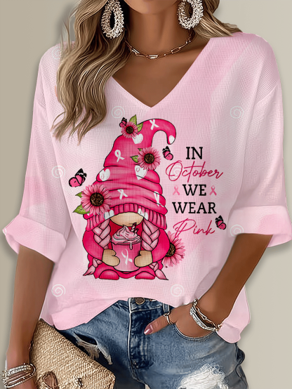 Gnomes Breast Cancer Printed Long Sleeve Top
