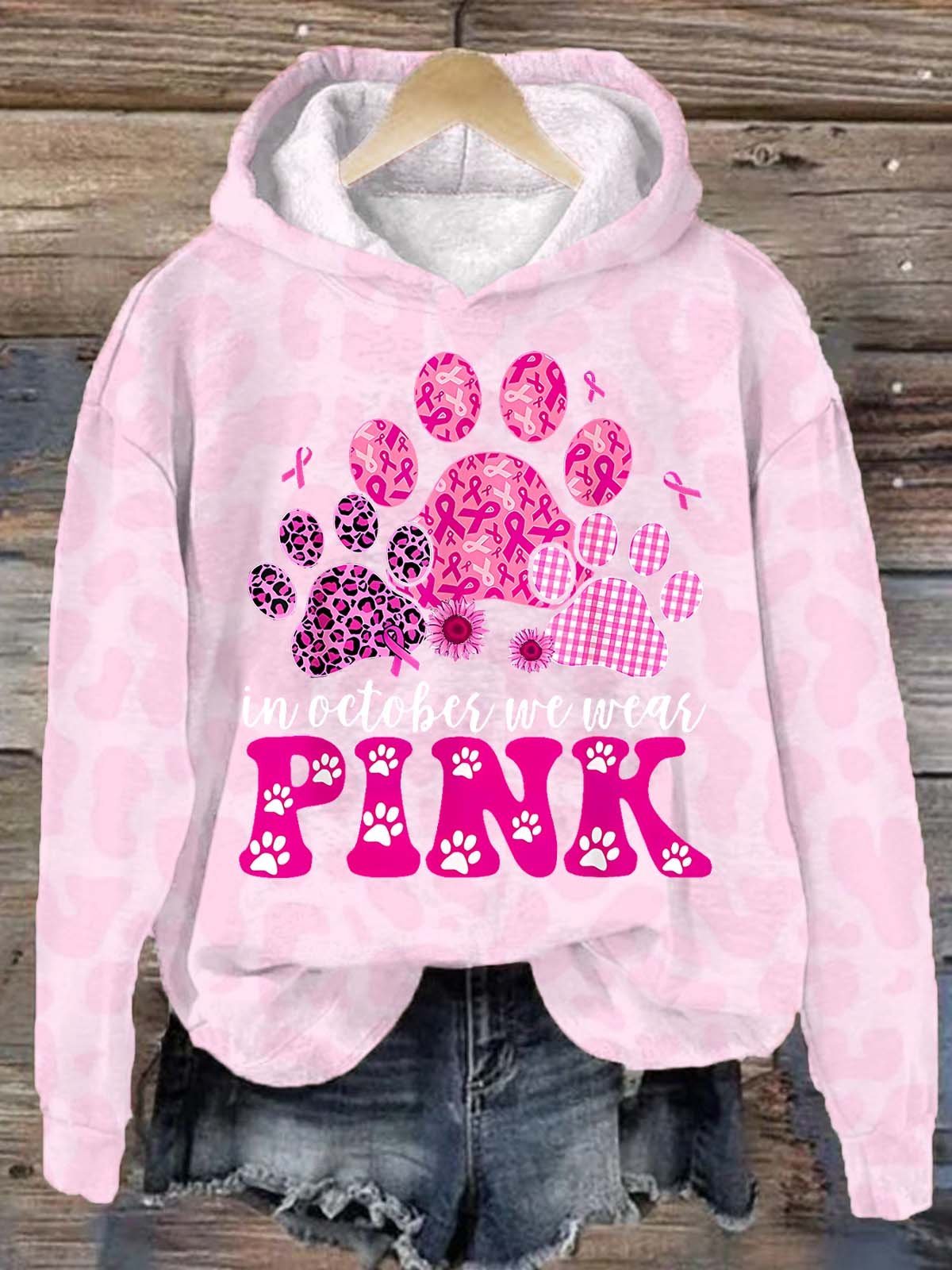 In October We Wear Pink Printed Casual Hooded Sweatshirt