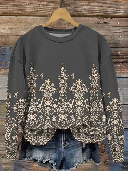 Vintage Art Print Casual Sweatshirt