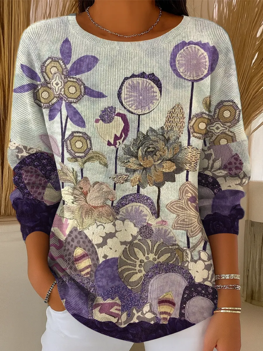 Woman's Purple Alzheimer Awareness Art Casual Pullover Sweater