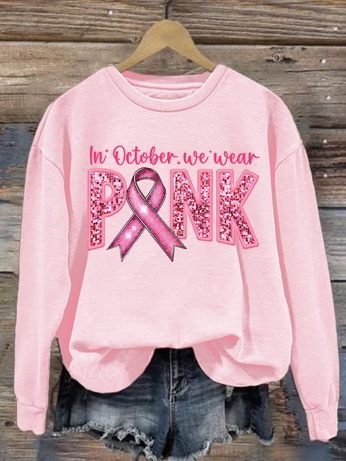 Women's Breast Cancer Crew Neck Print Sweatshirt