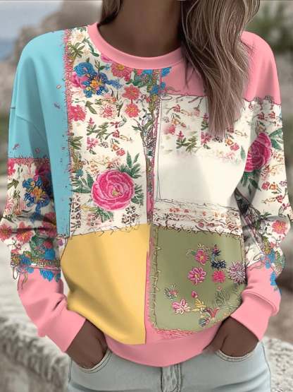 Women's Breast Cancer Floral Art Print Sweatshirt