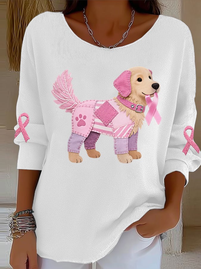 Women's Pink Dog Pink Ribbon Breast Cancer Awareness Print Sweater