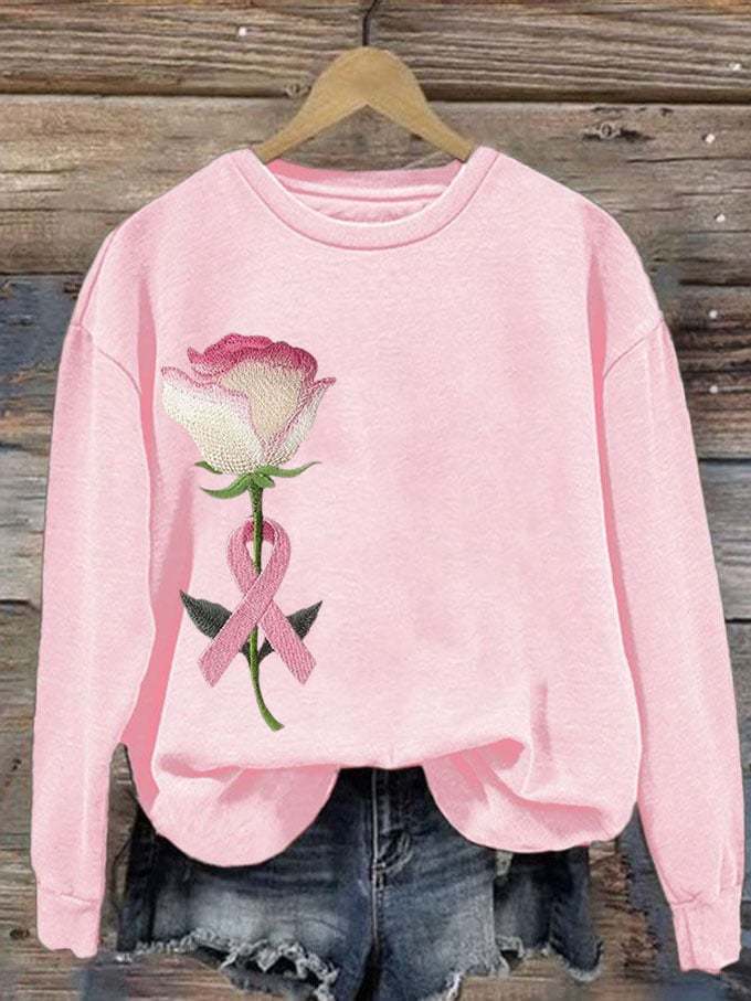 Women's Rose With Pink Ribbon Printed Sweatshirt