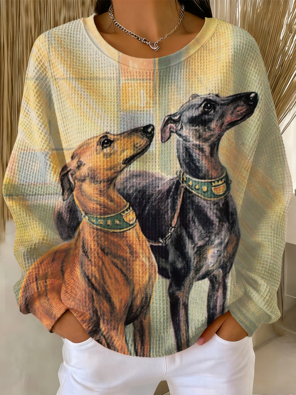 Vintage Dog Art Print Crew Neck Sweatshirt
