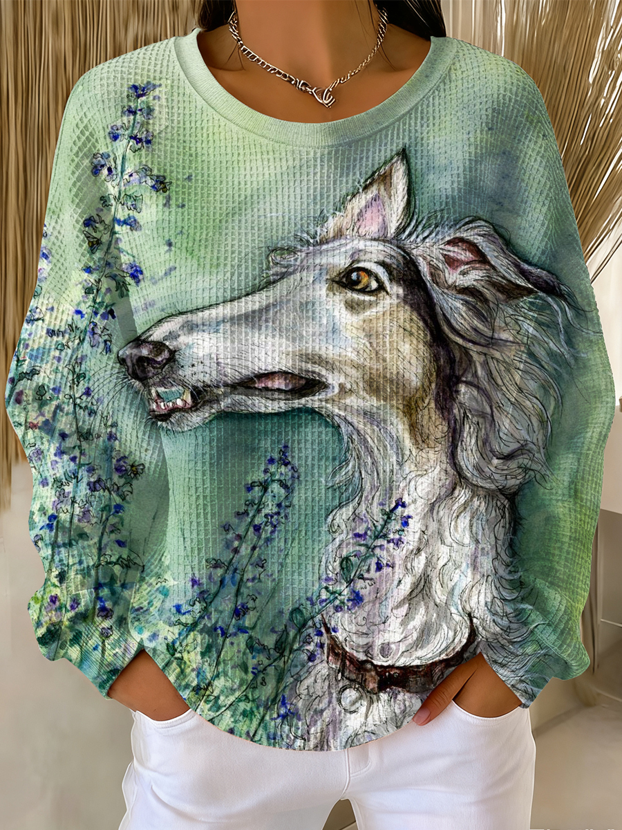 Vintage Dog Art Print Crew Neck Sweatshirt