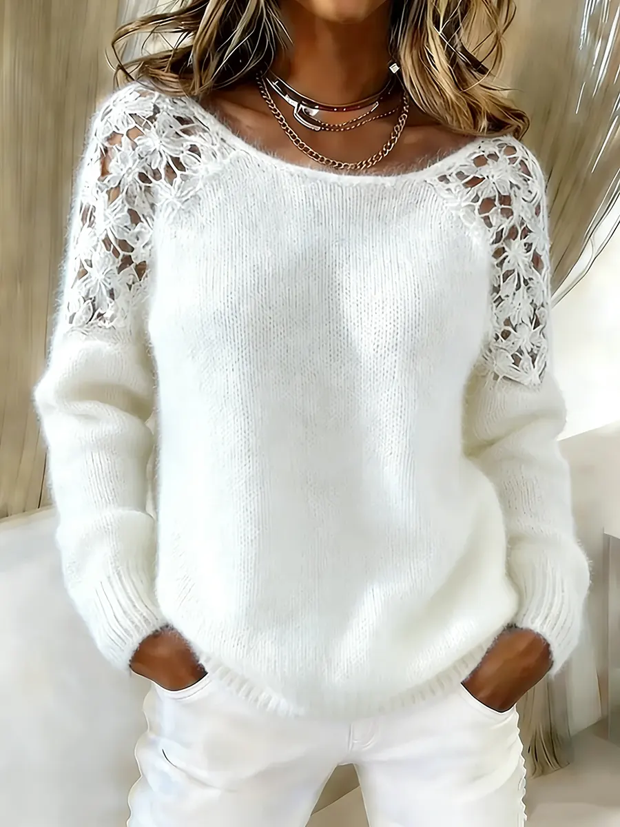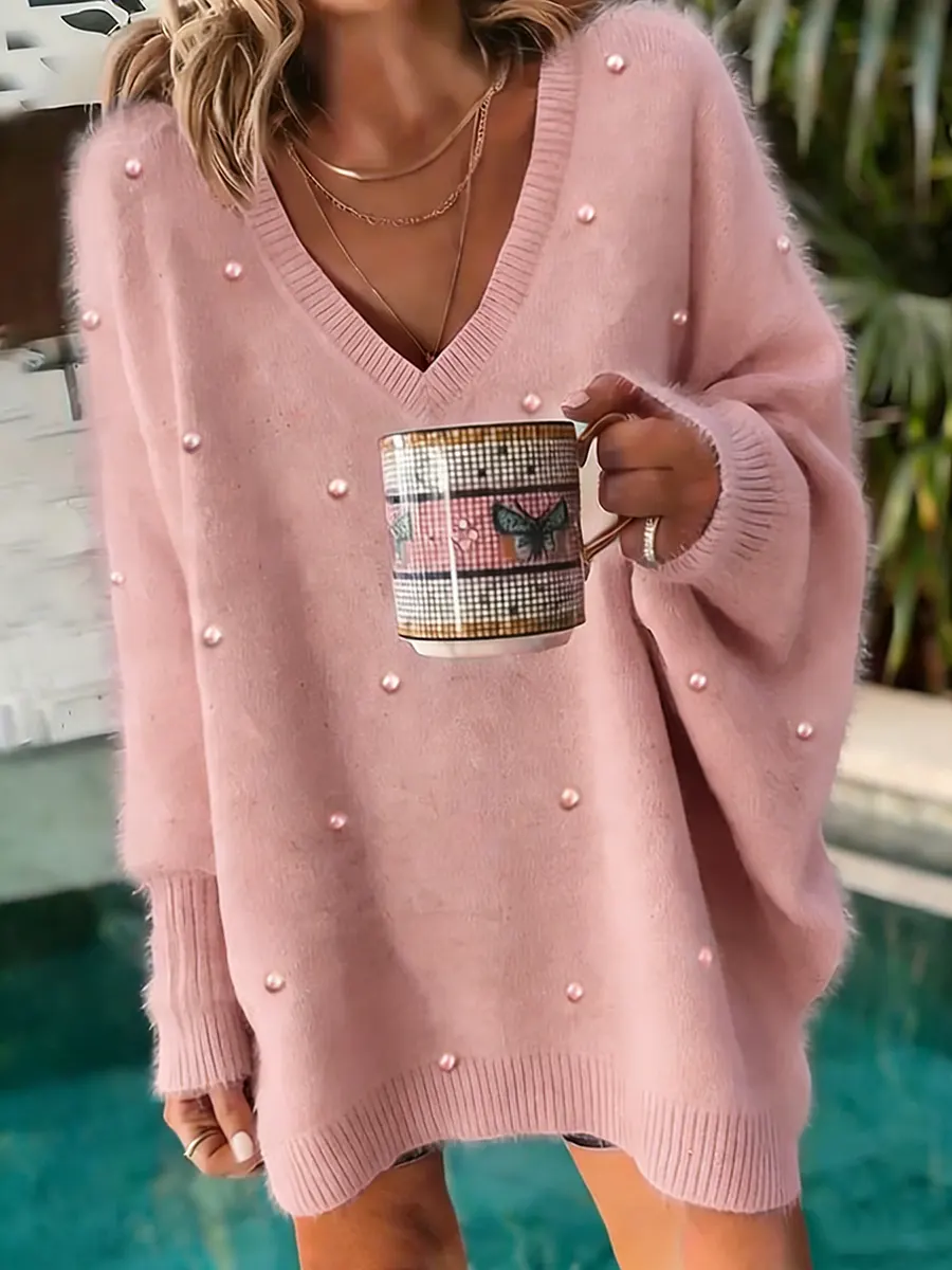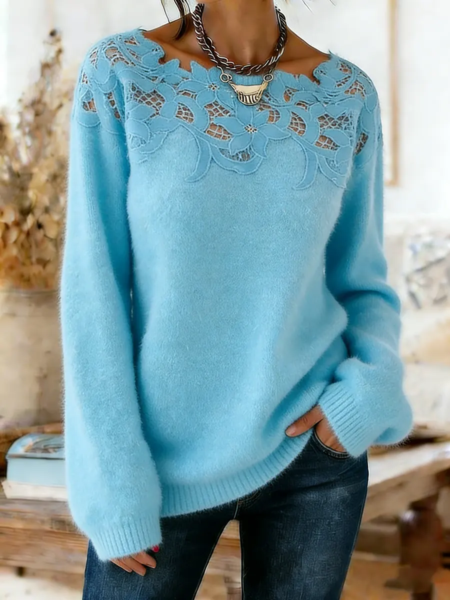 Women's Vintage Dark Brown Cute Olive Casual Round Neck Long Sleeve Knit Sweater