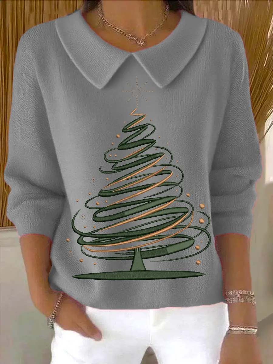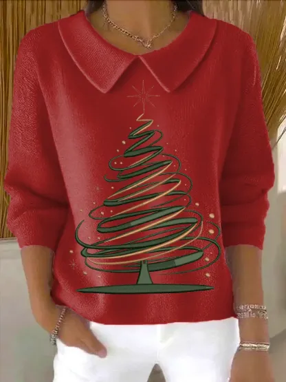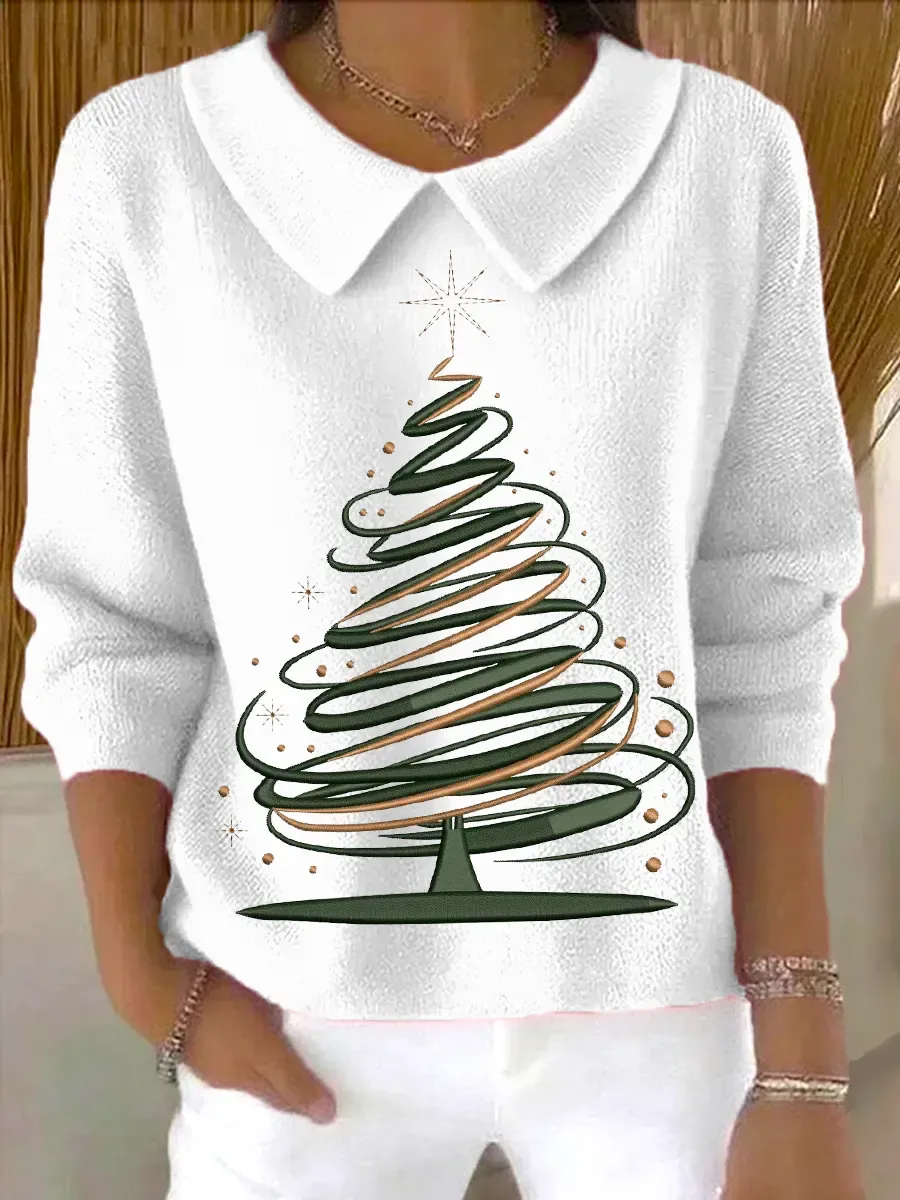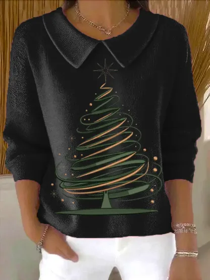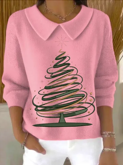 Christmas Tree Casual Peter Pan Collar 3/4 Sleeve Sweater
