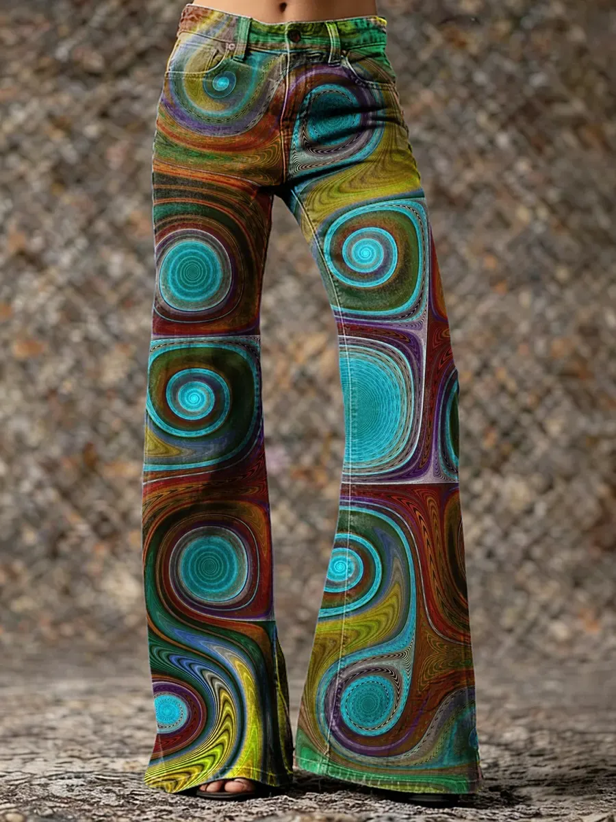 Women's Abstract Geometric Pattern Art Print Washed Denim Jeans