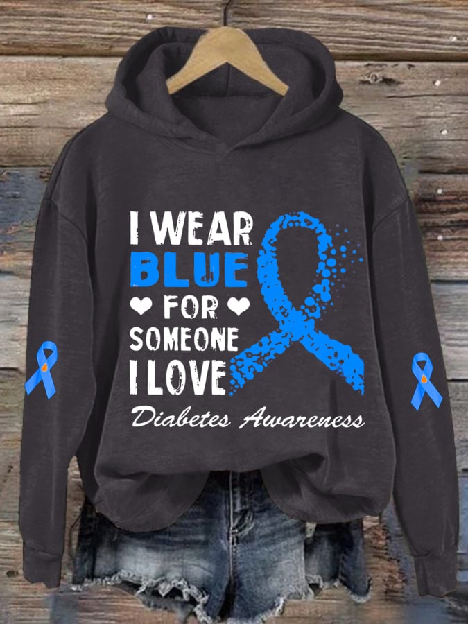 Women'S I Wear Blue For Someone I Love Diabetes Awareness Print Casual Hoodie