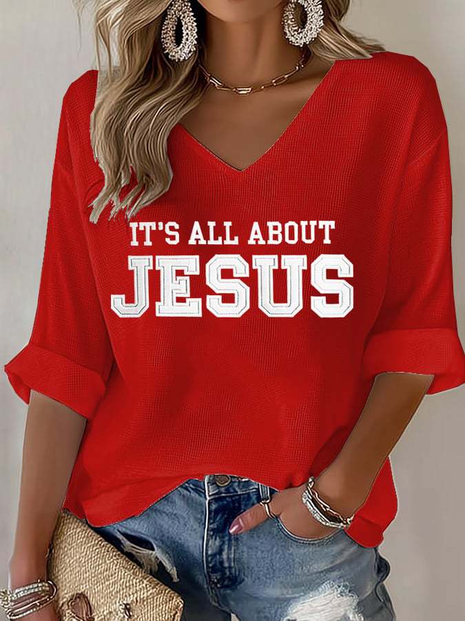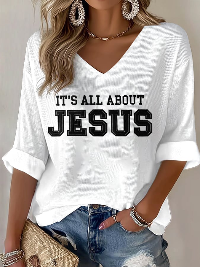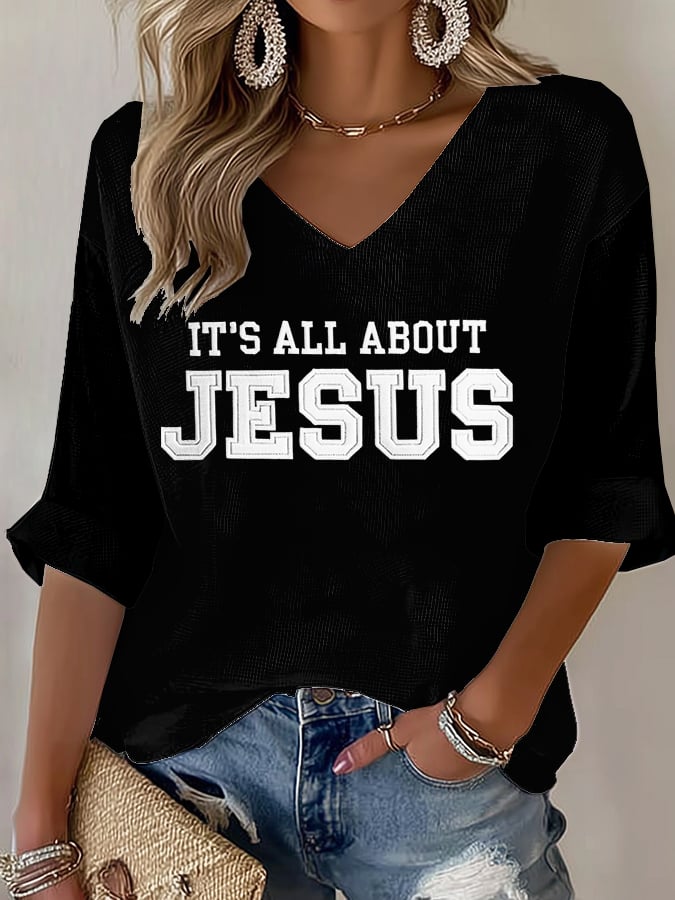 Women's It's All About Jesus Print V Neck T-shirt