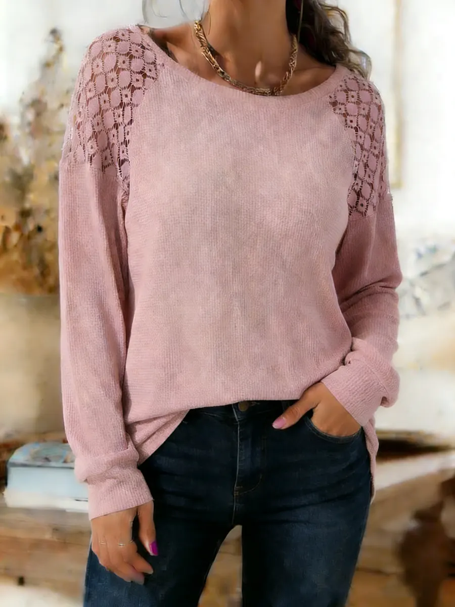 Women's Lace Patchwork Long Sleeve Crew Neck Sweater
