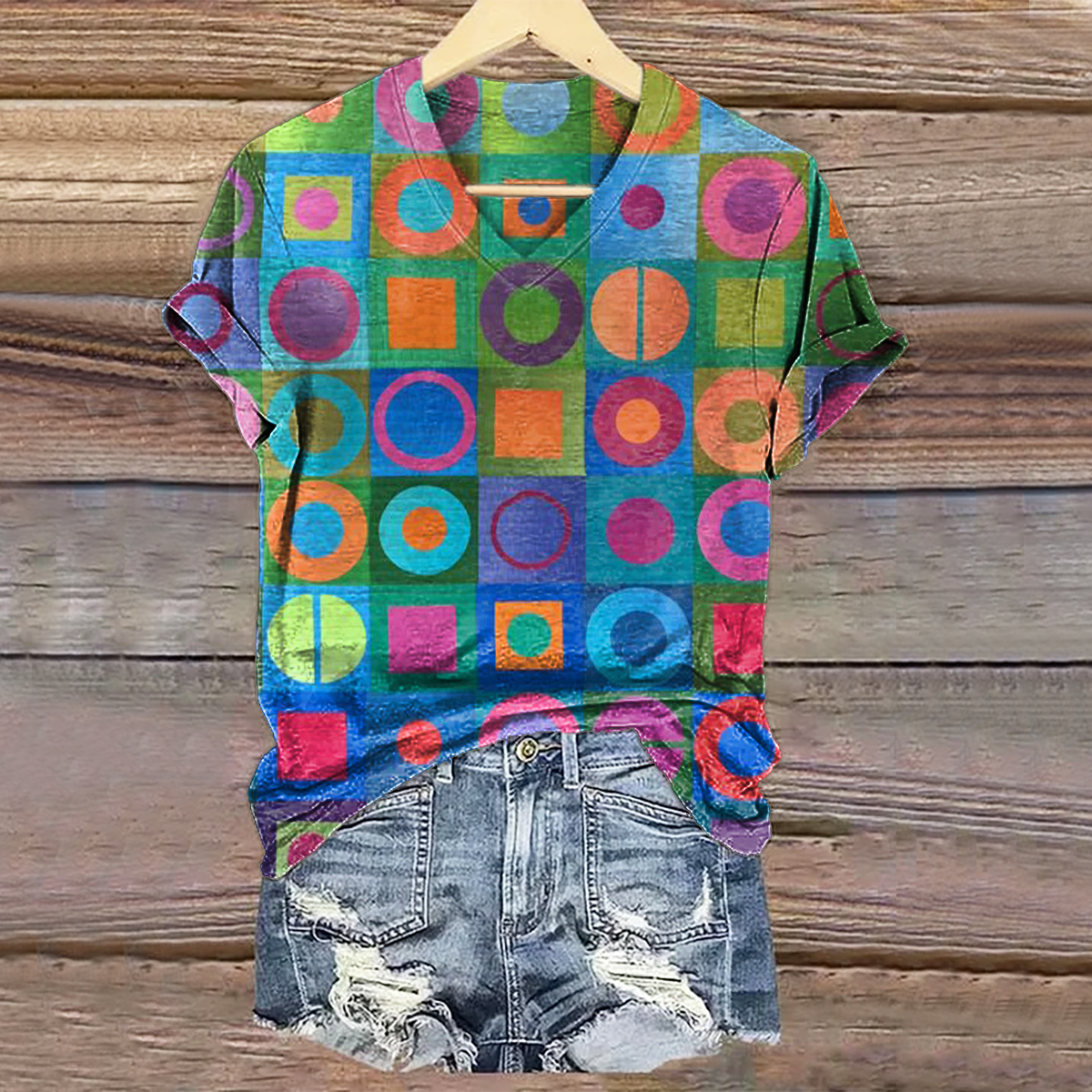Women's Retro Abstraction Art Print V-neck Casual T-Shirt